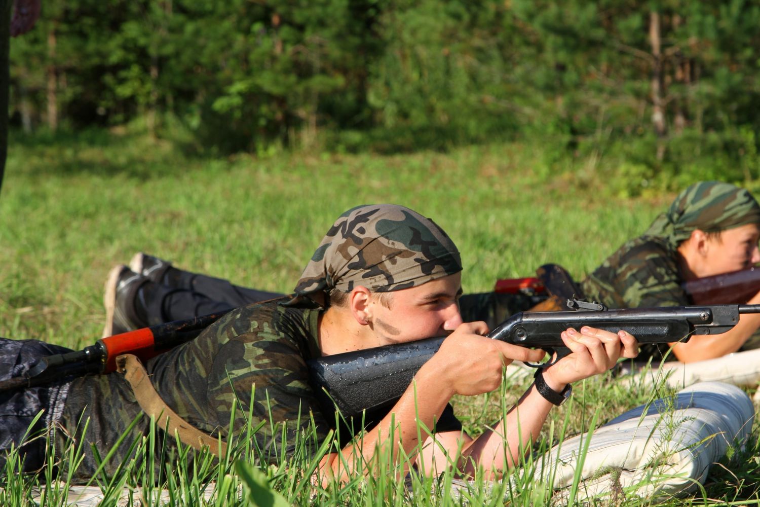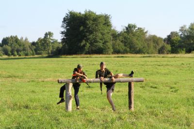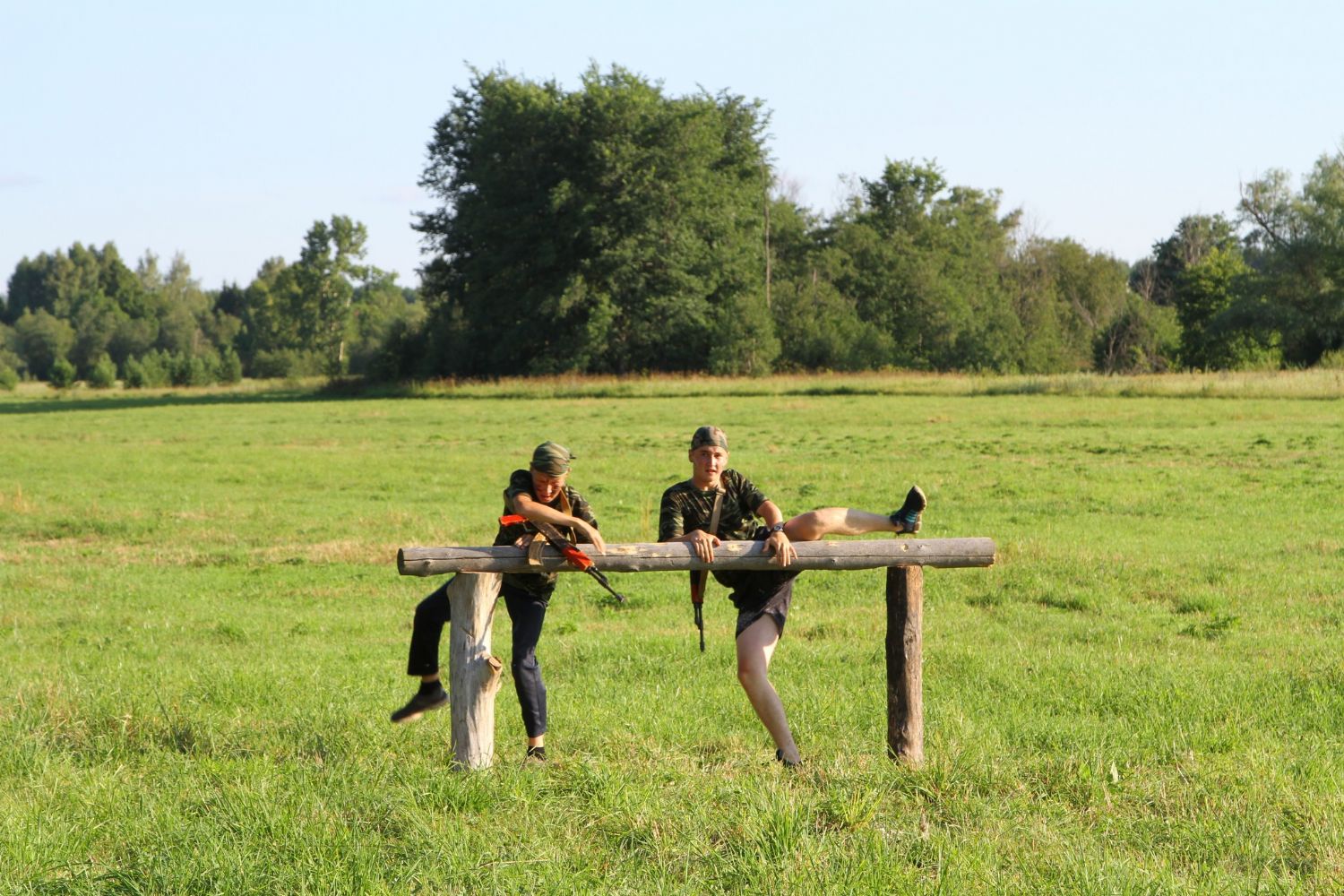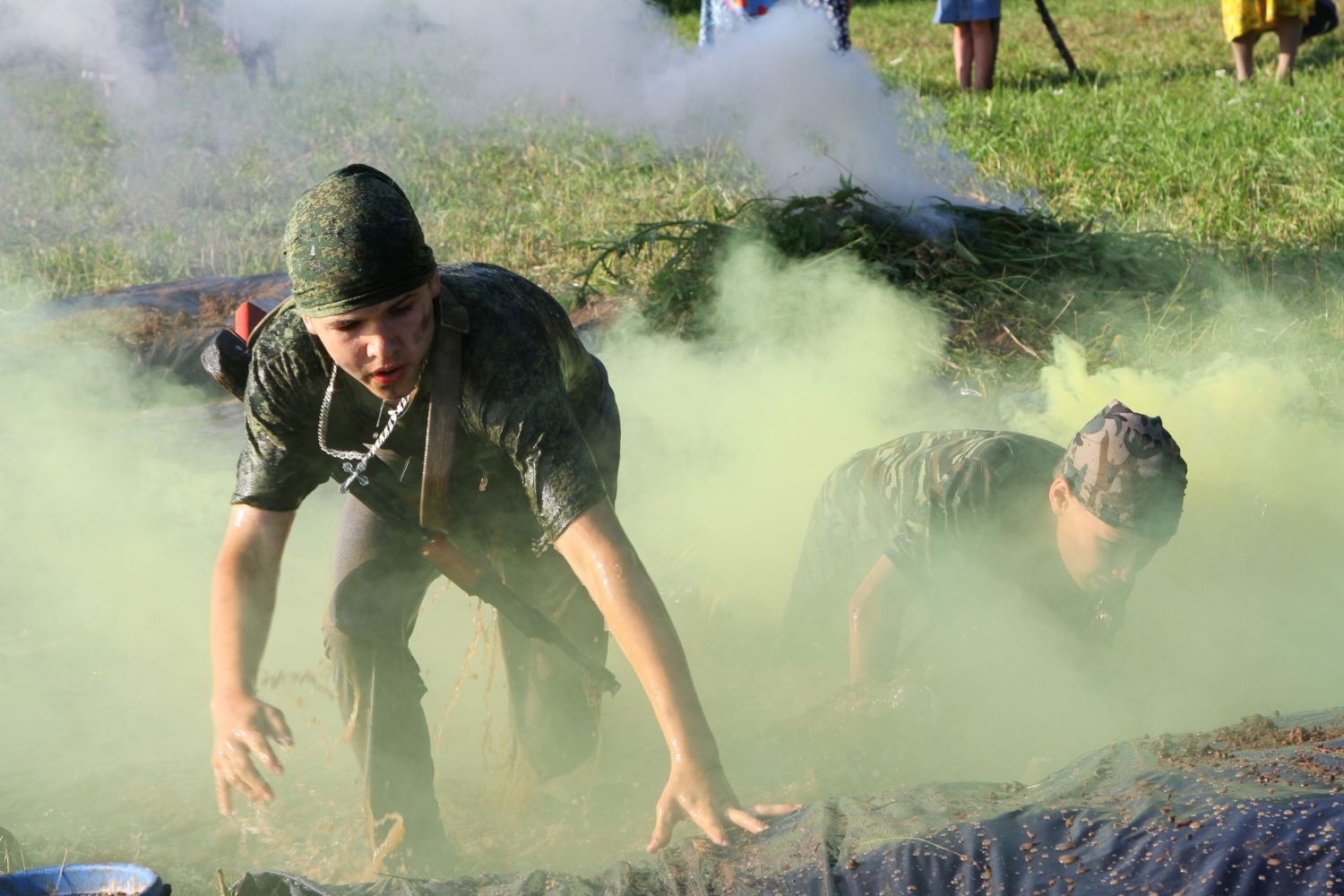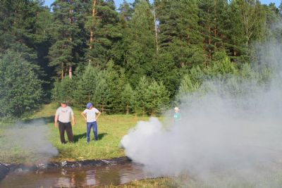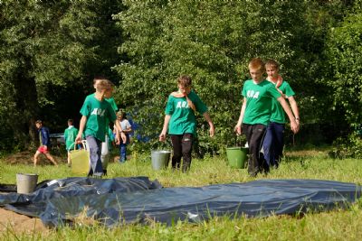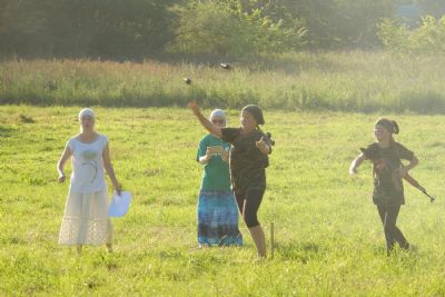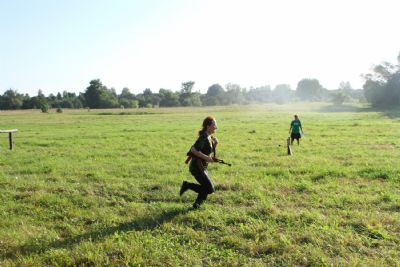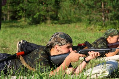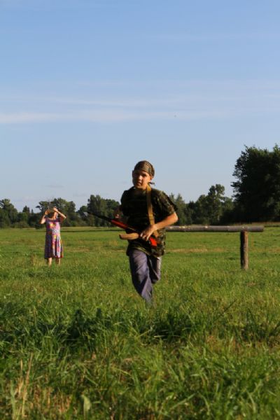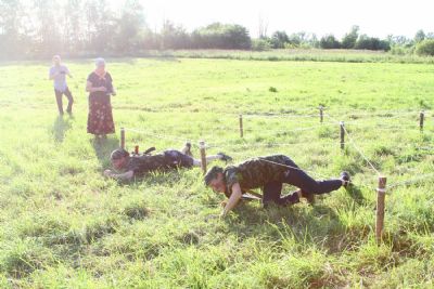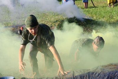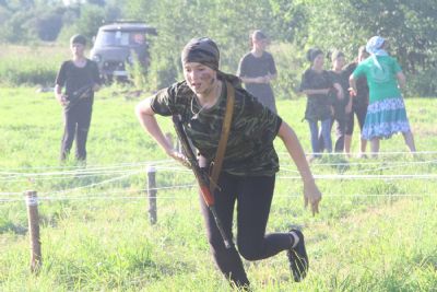 Оно из самых долгожданных событий лагерной смены — преодоление полосы препятствий, где участников команд ждет метание гранат, стрельба по мишеням из «воздушки», барьеры и ров с водой. С каким рвением дети состязаются, борьба идет не «детская». Команды поддерживают своих участников такими громкими криками, что, не смотря на отдаленность от деревни, жители ее, наверняка, слышать дружное «Саша, быстрей!»