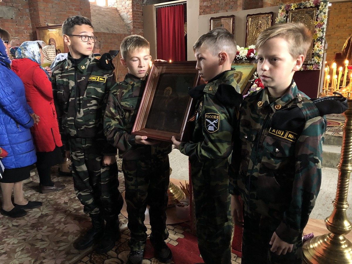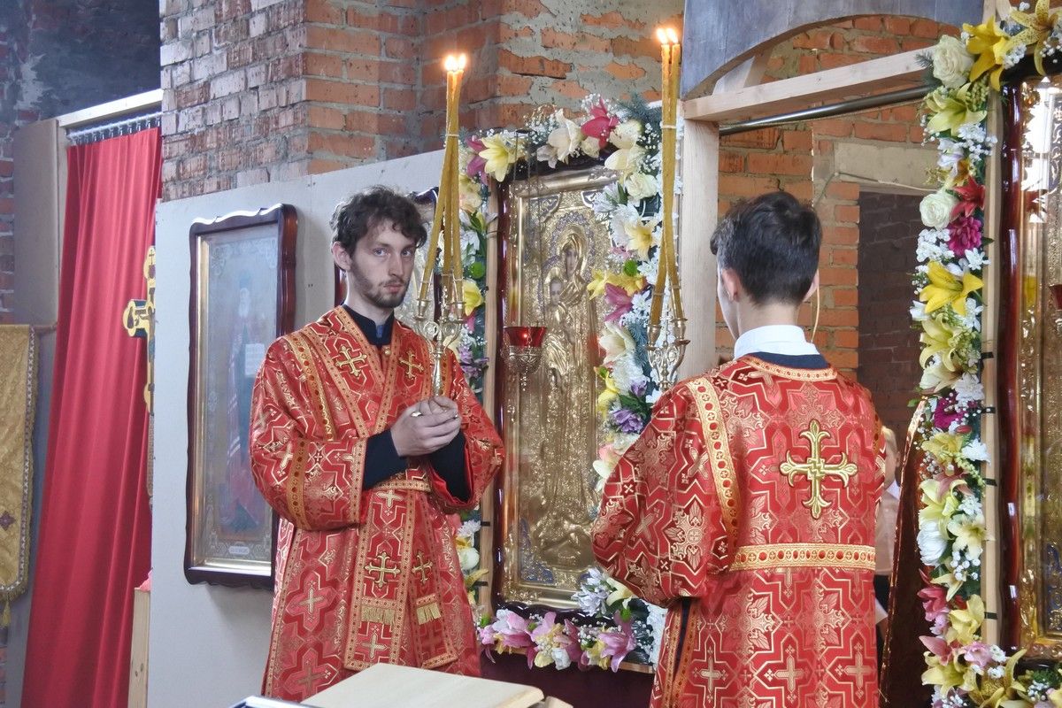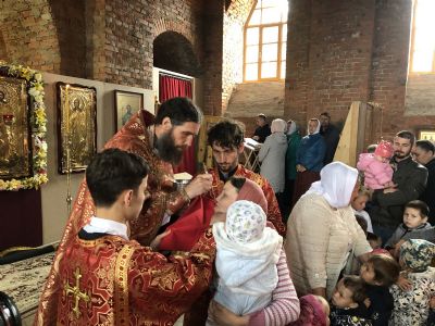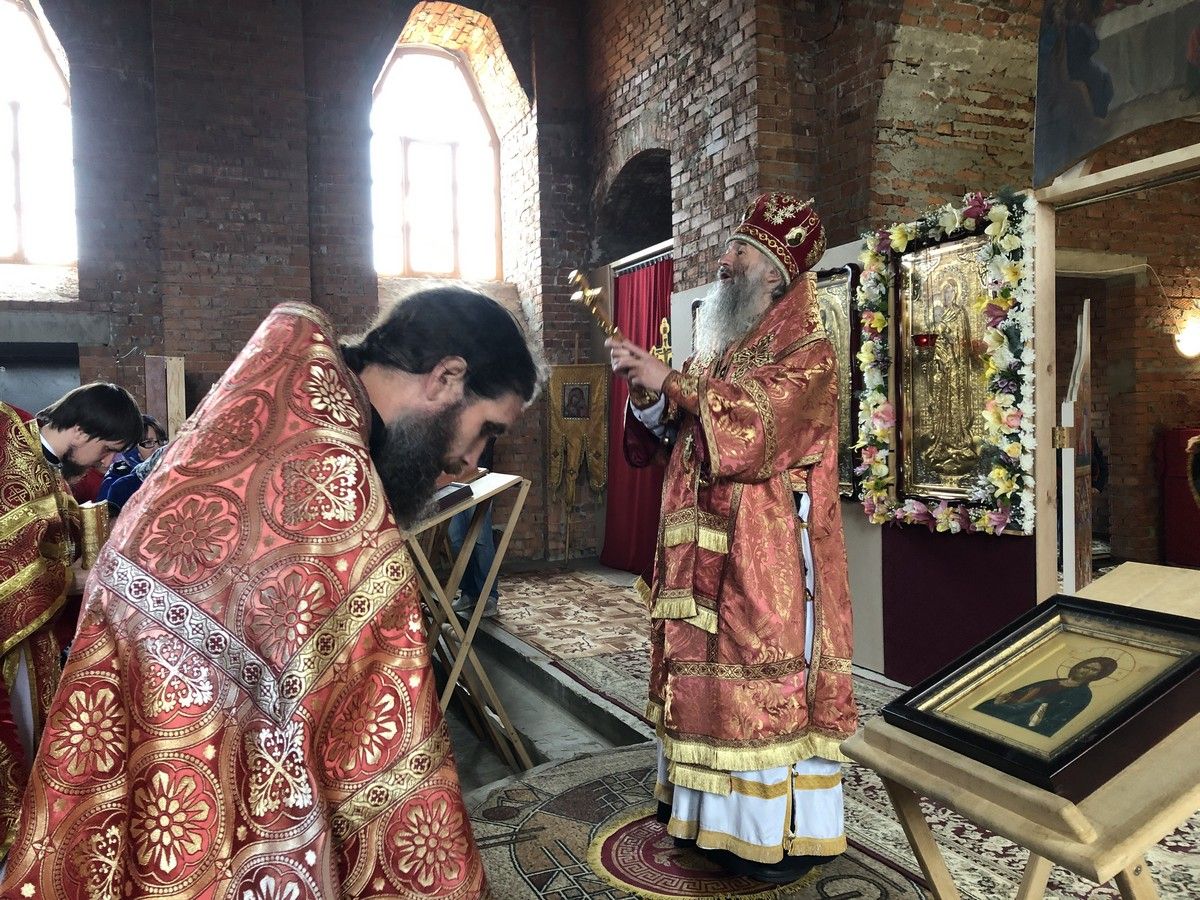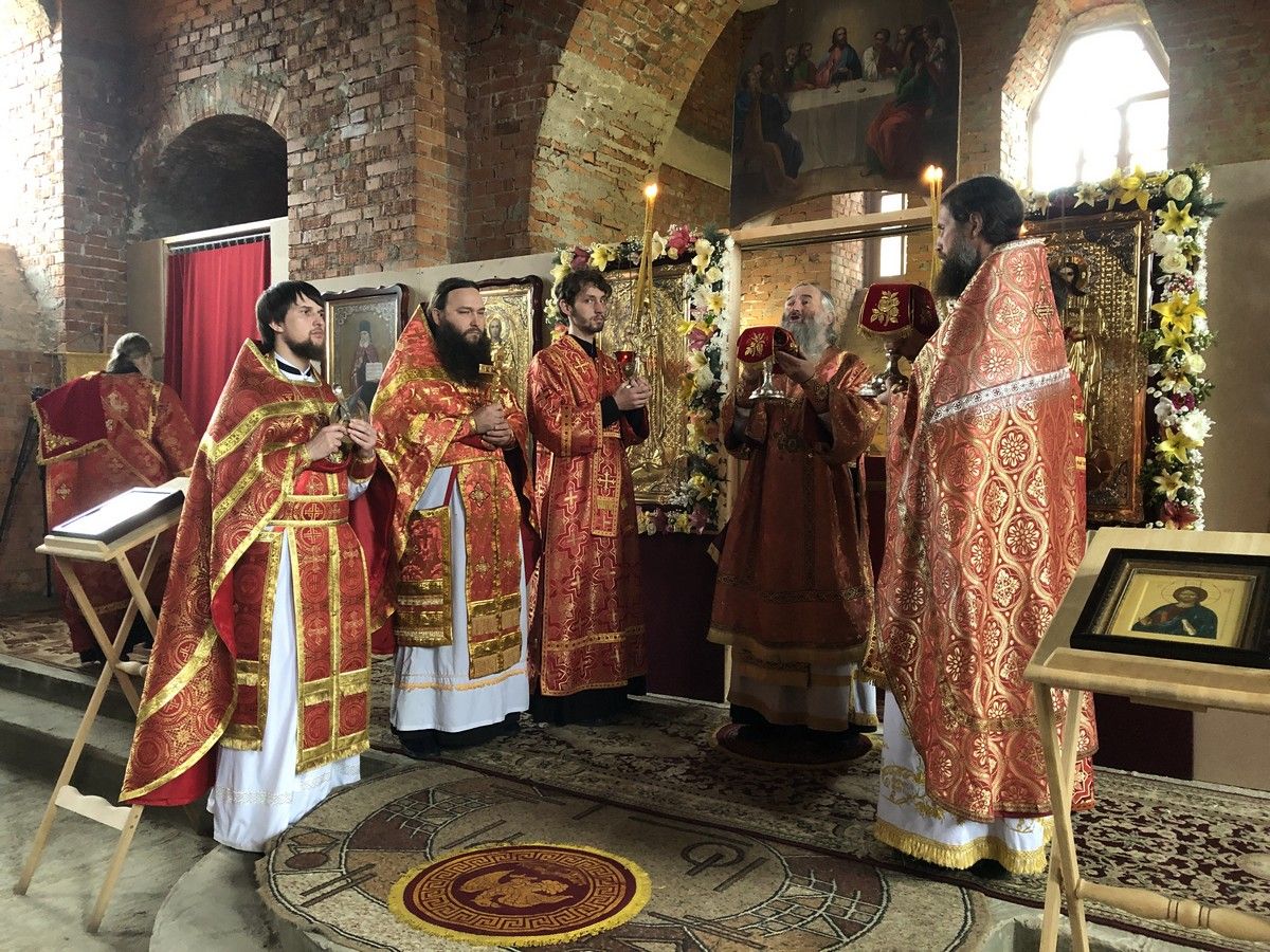 Сегодня у храма уже почти завершённый вид. Вот и первая Литургия! В ближайшие месяцы планируется оборудовать котельную и провести в храм тепло. Ведь теперь все богослужения планируется свершаться здесь. А уже в сентябре храм должны украсить купола, которые сейчас изготавливаются в г. Ростове-на-Дону.