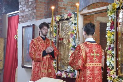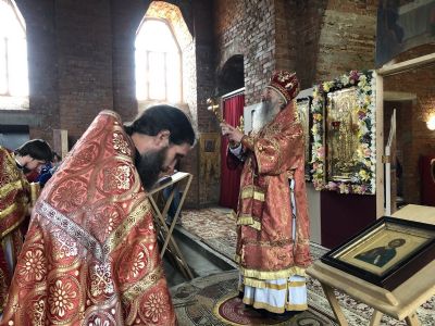Сослужили архипастырю: настоятель храма благочинный Северо-Западного церковного округа протоиерей Андрей Романов, настоятель храма Сретения Господня с. Кучка протоиерей Алексий Вязов, клирик храма пророка Илии п. Килемары Димитрий Васенев, клирик храма Рождества Пресвятой Богородицы с. Семеновка протодиакон Михаил Козловский.