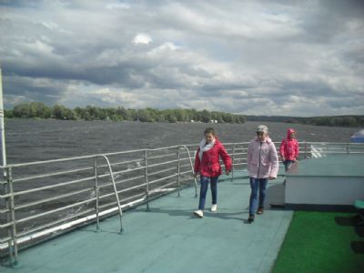 С теплохода мы видим и левый и правый берег Волги, а экскурсовод по радио сообщает нам, какой населенный пункт в данное время мы проплываем, рассказывая нам о его достопримечательностях. Мы возвращаемся в г. Чебоксары, собравшись на палубе и ожидая шлюзы Чебоксарской ГЭС. Еще раз уясняем для себя принцип работы шлюзов. В г. Чебоксары прощаемся с командой и Капитаном теплохода «Алдан».