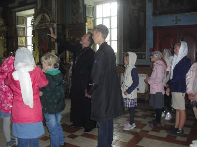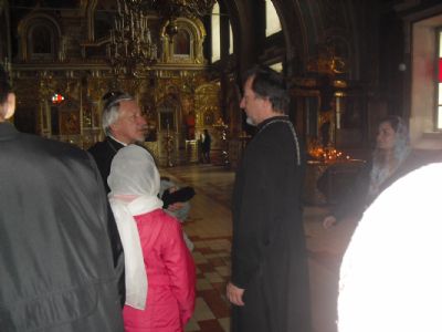 Идем за Батюшкой в Никольский кафедральный собор. Встречает нас настоятель собора протоиерей Иоанн Барсуков. Он рассказывает нам о его истории и святынях. Вместе с отцом Иоанном поем тропарь, кондак и величание Николаю Чудотворцу, ставим свечи, прикладываемся к иконам. Поблагодарив отца Иоанна за гостеприимность, прощаемся.
