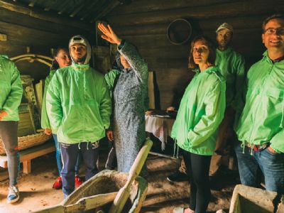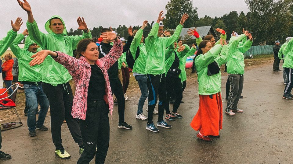 Наш день начался с мощной зарядки и игр на доверие в стенах ФОКа «Олимпия» на выезде из Воскресенского. Позавтракав и насладившись ещё раз ветлужскими далями в кафе «Ветлуга», мы отправились в нелегкий путь под моросящим дождём.
