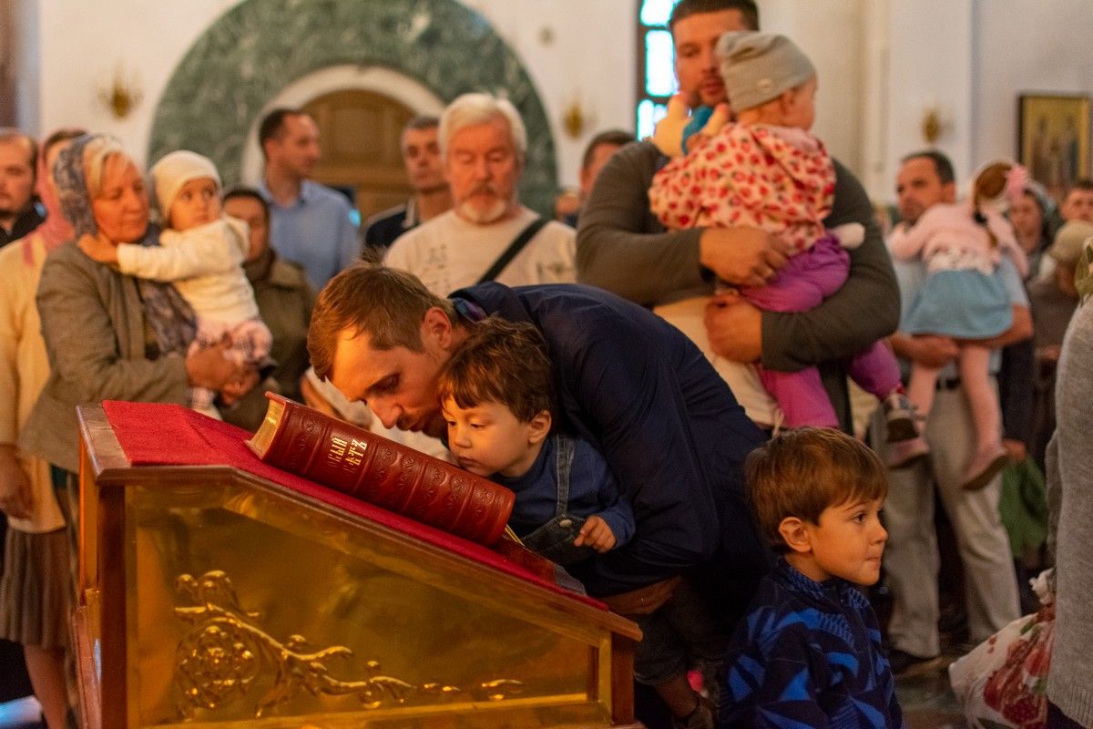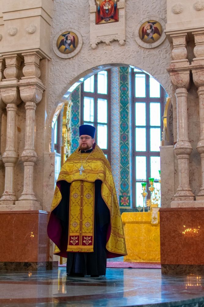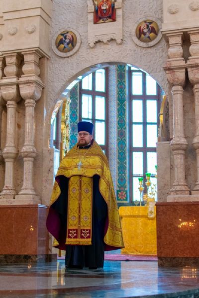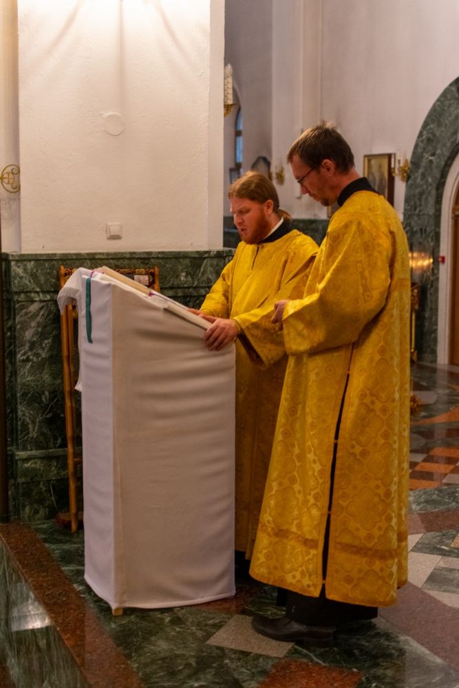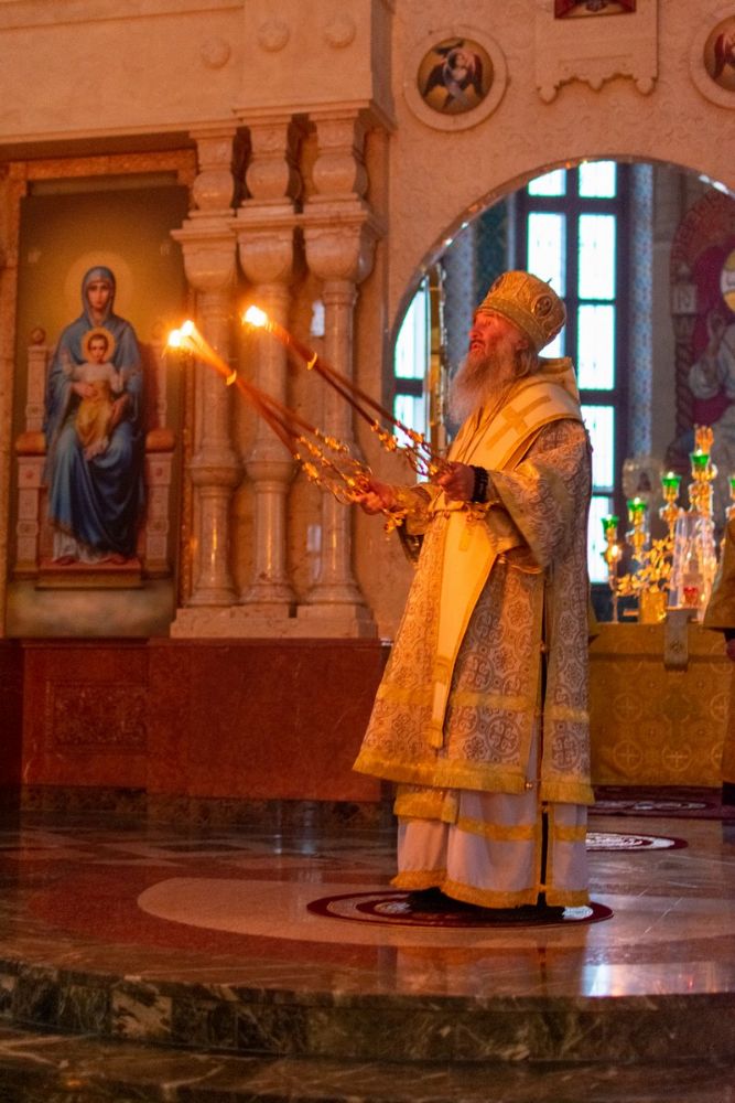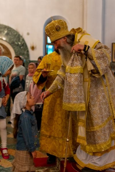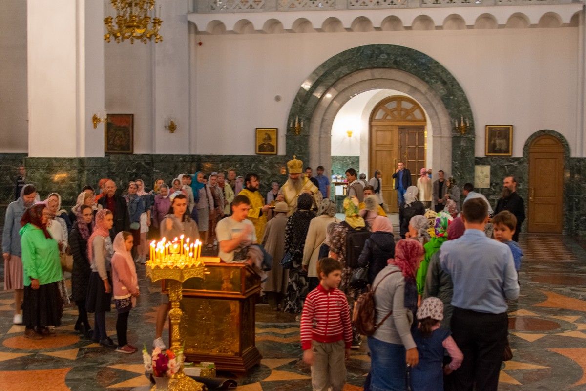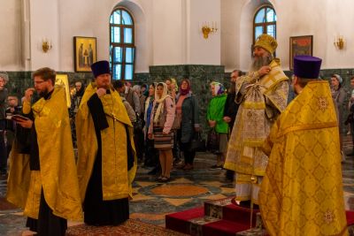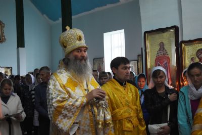 Владыке сослужили: ключарь собора протоиерей Сергий Поглазов, клирики собора иерей Артемий Промович, иерей Евгений Самойлов, диакон Андрей Дружинин и клирик храма Рождества Пресвятой Богородицы села Семеновка протодиакон Михаил Козловский.