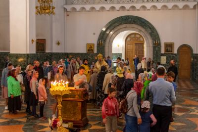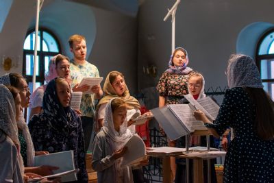 За богослужением песнопения исполнял детско-юношеский хор «Благовест» под руководством регента Надежды Поздеевой.