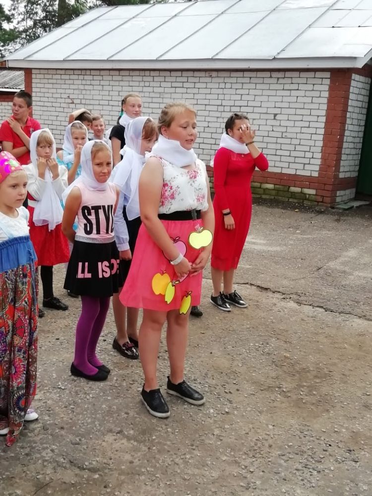 В последний день ребята выступили с концертом перед прихожанами, который посвятили лету, солнцу, августу, Спасу. К этому концерту готовились в течение целой недели. Учили стихи, песни, репетировали сценку и танец, готовили подарки прихожанам.