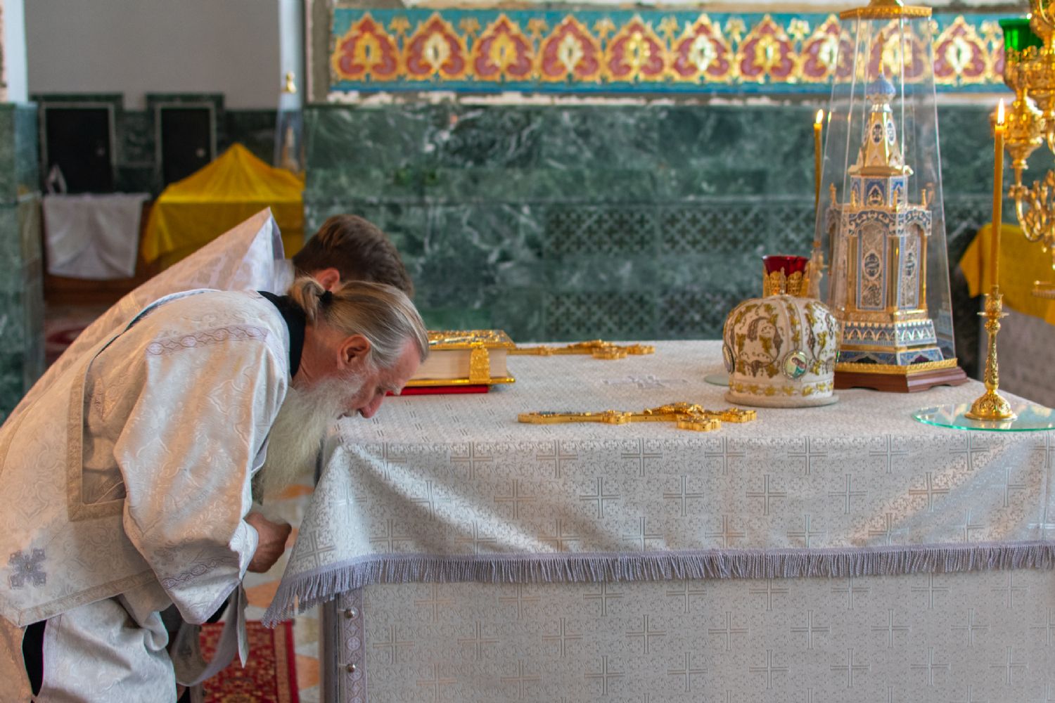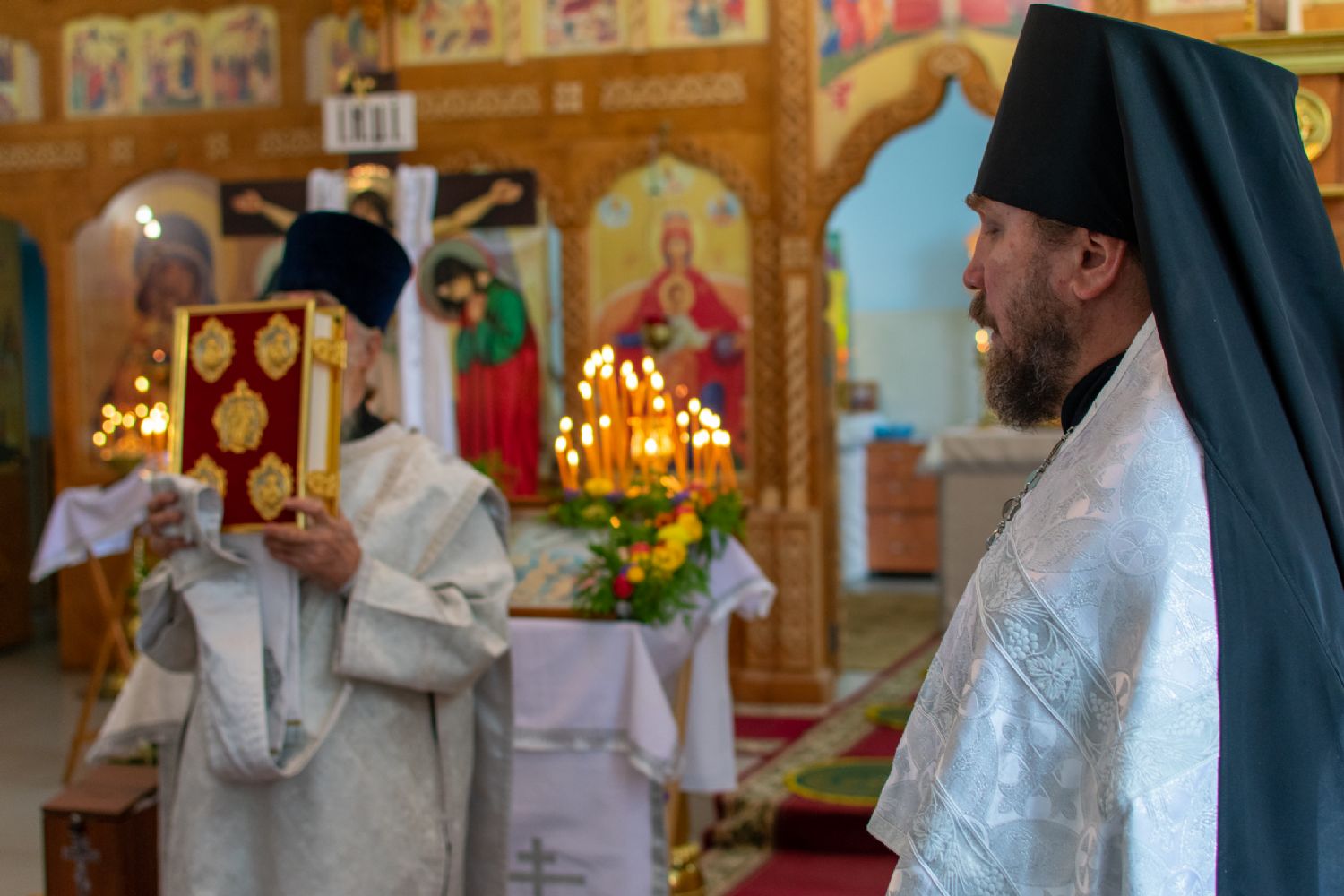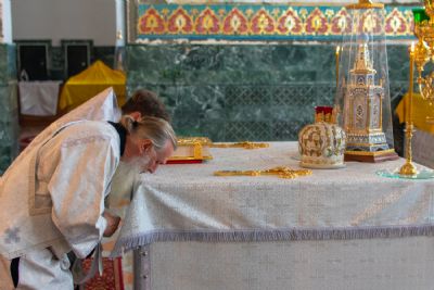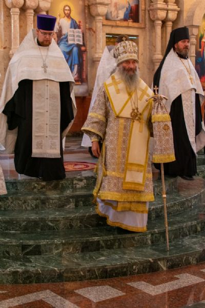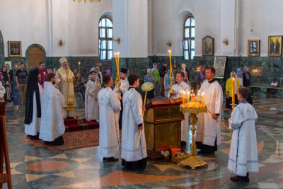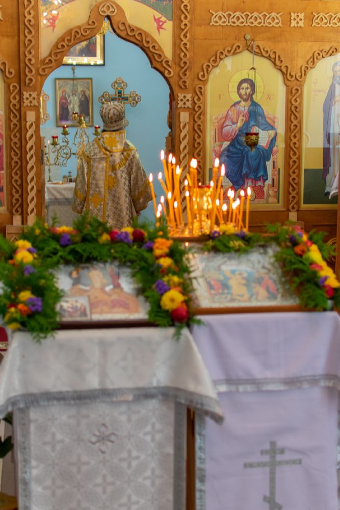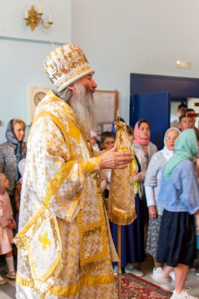 25 августа за Литургией митрополиту Иоанну сослужили: секретарь Йошкар-Олинского епархиального управления иеромонах Серафим (Пасанаев), настоятель храма иерей Василий Яшмолкин и клирик храма Рождества Пресвятой Богородицы с. Семеновка протодиакон Михаил Козловский. Песнопения исполнял хор под руководством регента Ольги Акилбаевой.