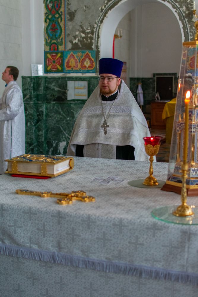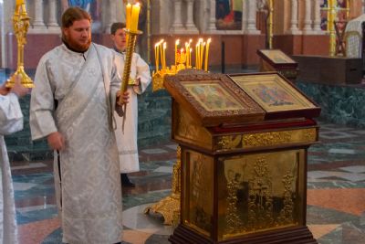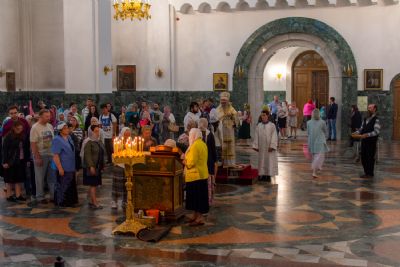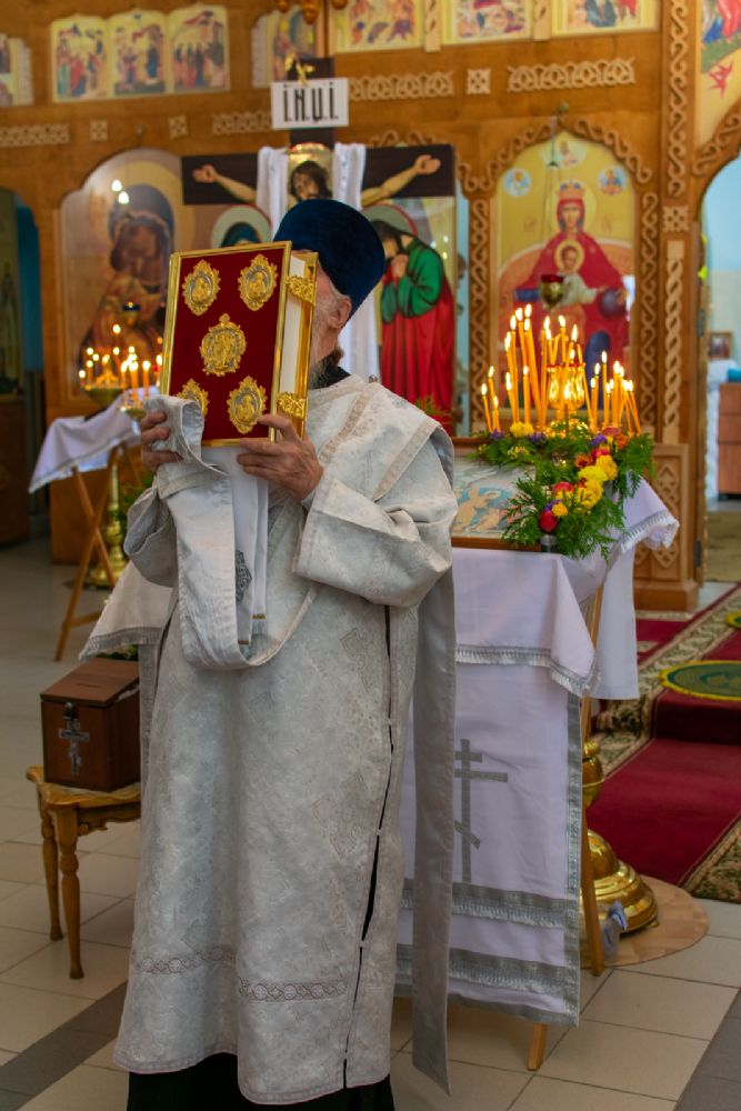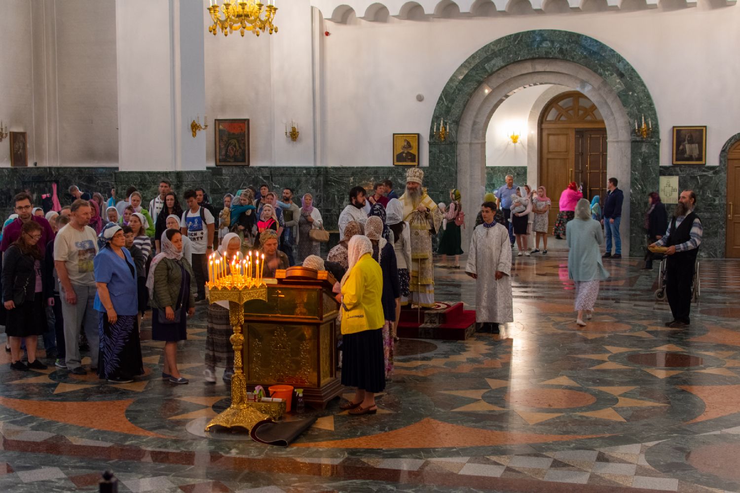 25 августа за Литургией митрополиту Иоанну сослужили: секретарь Йошкар-Олинского епархиального управления иеромонах Серафим (Пасанаев), настоятель храма иерей Василий Яшмолкин и клирик храма Рождества Пресвятой Богородицы с. Семеновка протодиакон Михаил Козловский. Песнопения исполнял хор под руководством регента Ольги Акилбаевой.