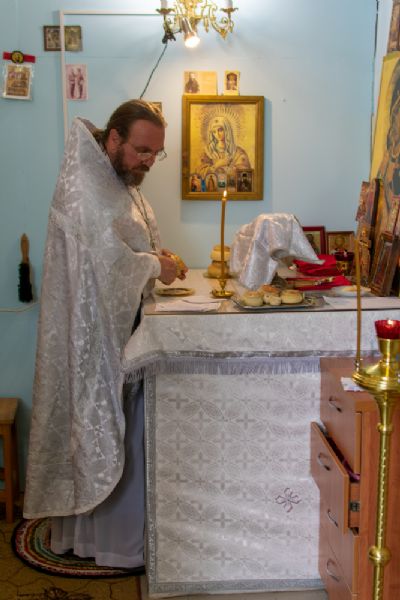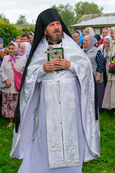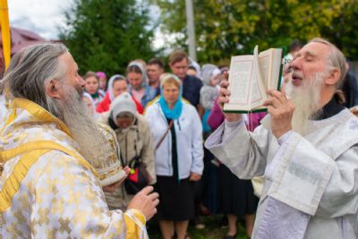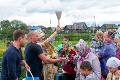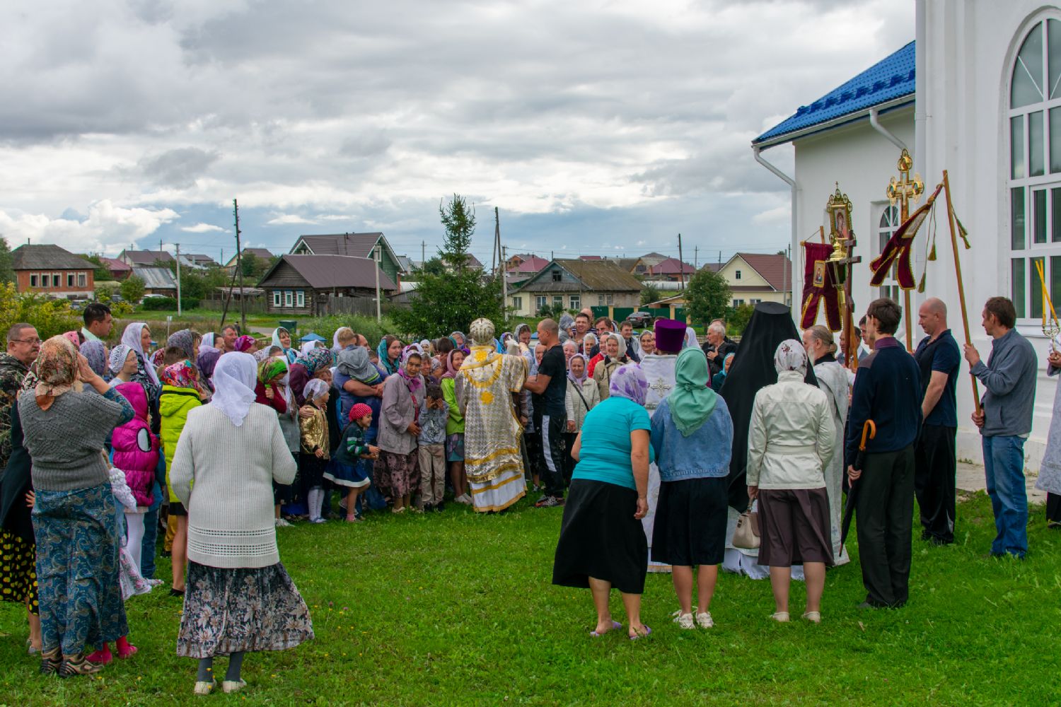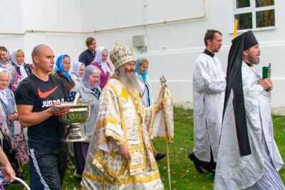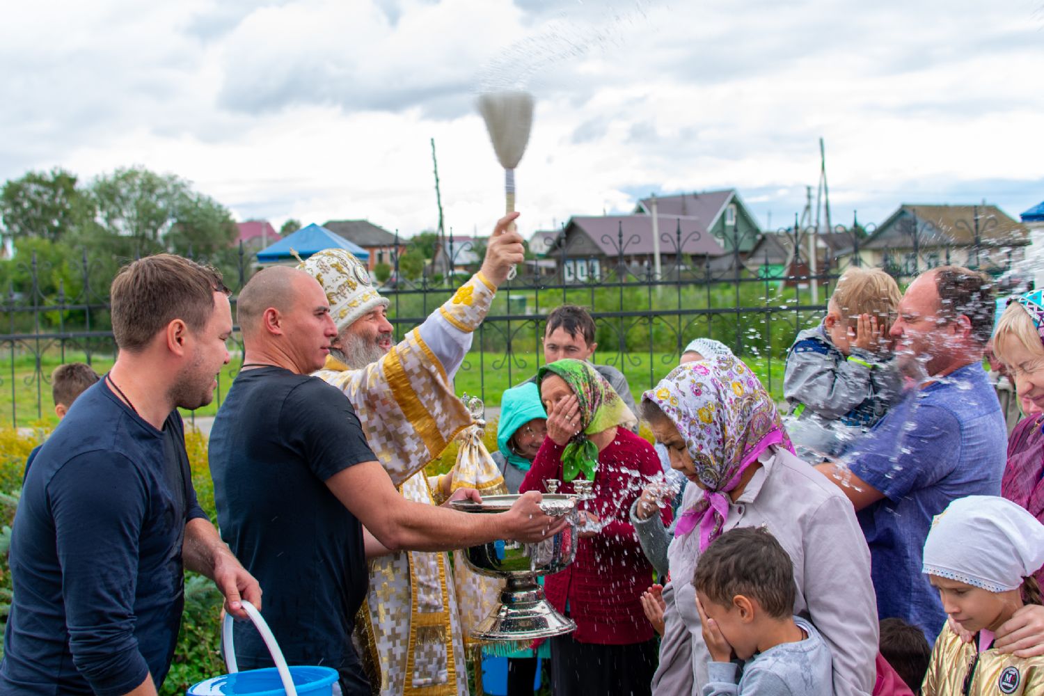 После Литургии был совершен молебен в честь Преображения Господня с крестным ходом вокруг храма и кроплением святой водой.