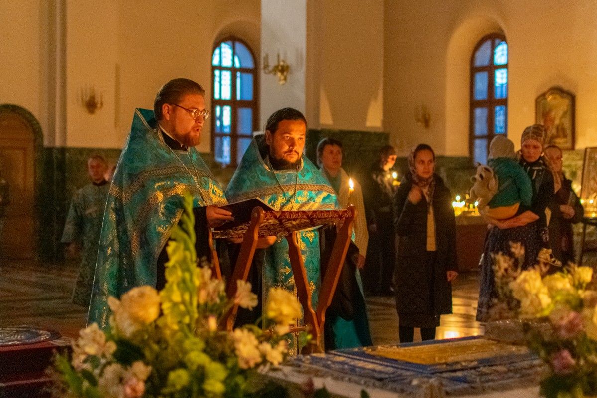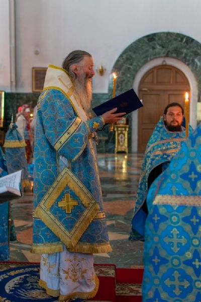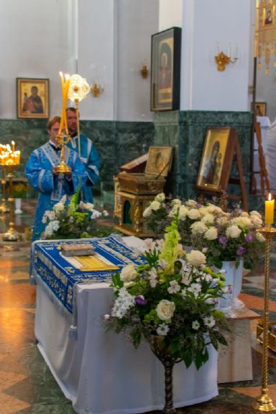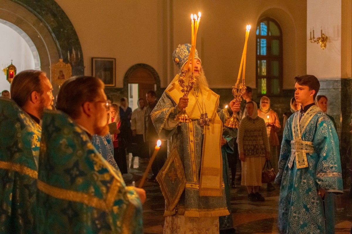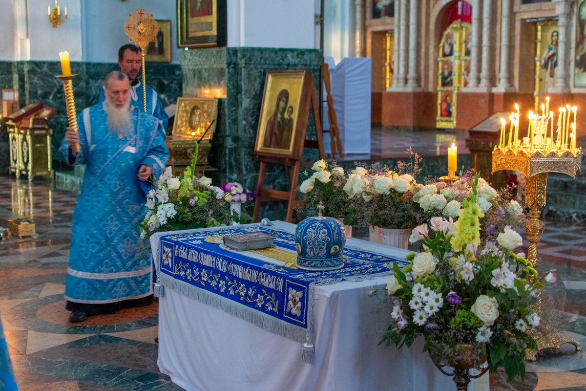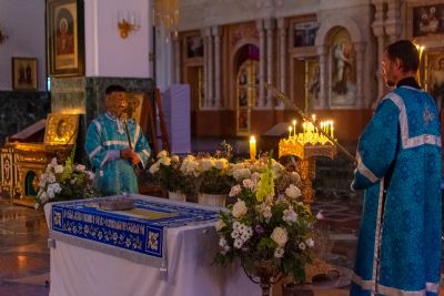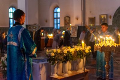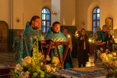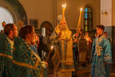 29 августа на 3-й день после праздника Успения Божией Матери митрополит Йошкар-Олинский и Марийский Иоанн возглавил Всенощное бдение с чином погребения Божией Матери в Благовещенском Кафедральном соборе.