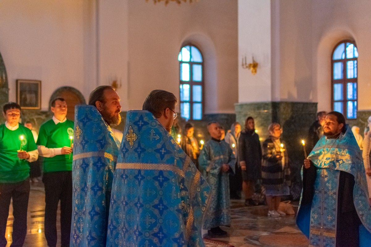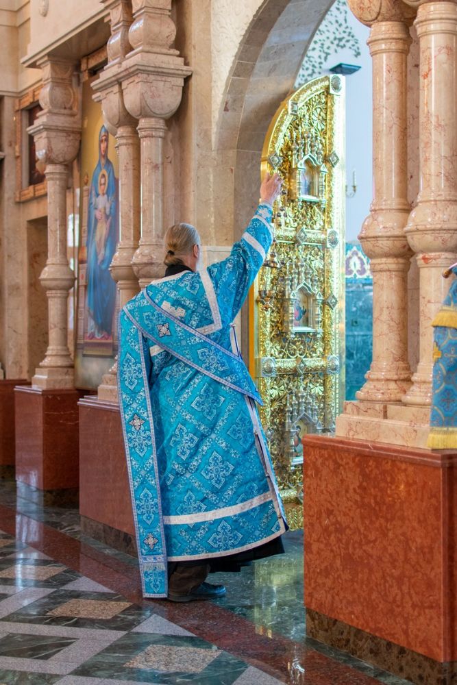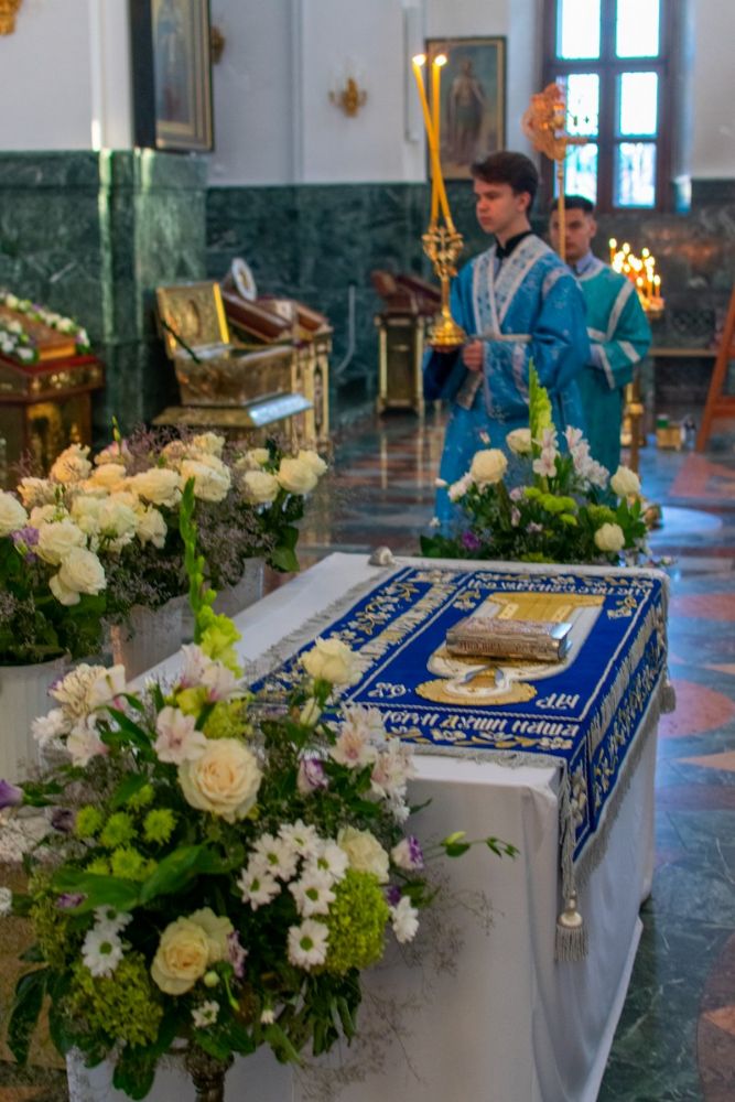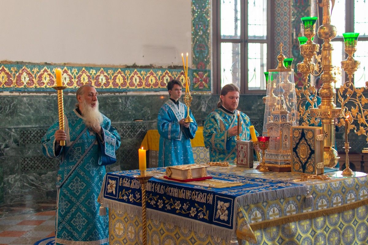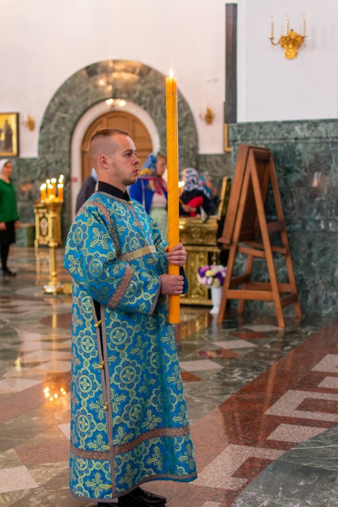 29 августа на 3-й день после праздника Успения Божией Матери митрополит Йошкар-Олинский и Марийский Иоанн возглавил Всенощное бдение с чином погребения Божией Матери в Благовещенском Кафедральном соборе.