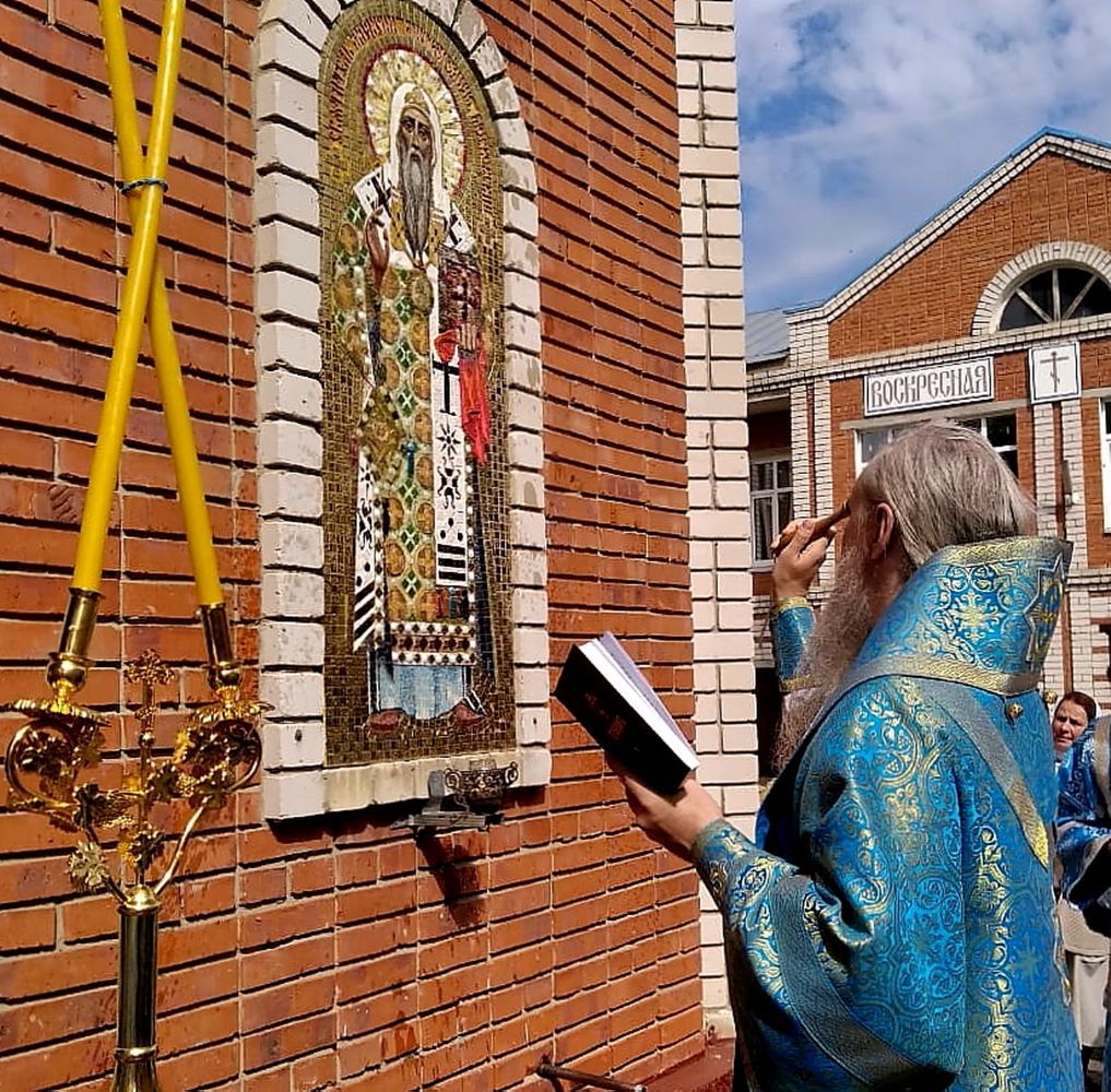 Владыка Феофан подчеркнул, что в этот день так же празднуется собор Московских святых и высказал пожелание, чтобы весь приход помолился об освящении новой иконы святителя Алексия Московского, расположенной с внешней стороны восточной стены часовни в честь этого святого. Все собравшиеся во главе с епископом Феофаном, священниками и певчими проследовали к часовне на территории собора, где вознесли свои молитвы Богу перед мозаичной иконой святителя.