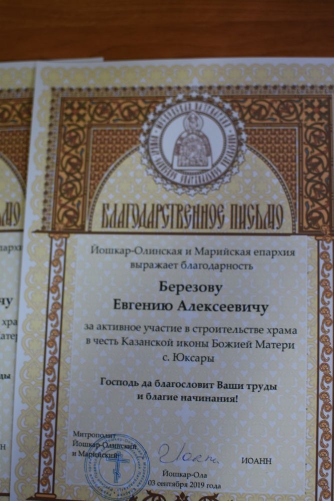 Затем Владыка вручил благодарственные письма за участие в строительстве храма.