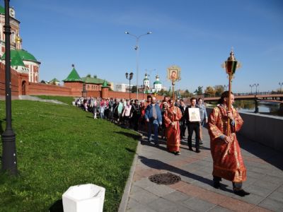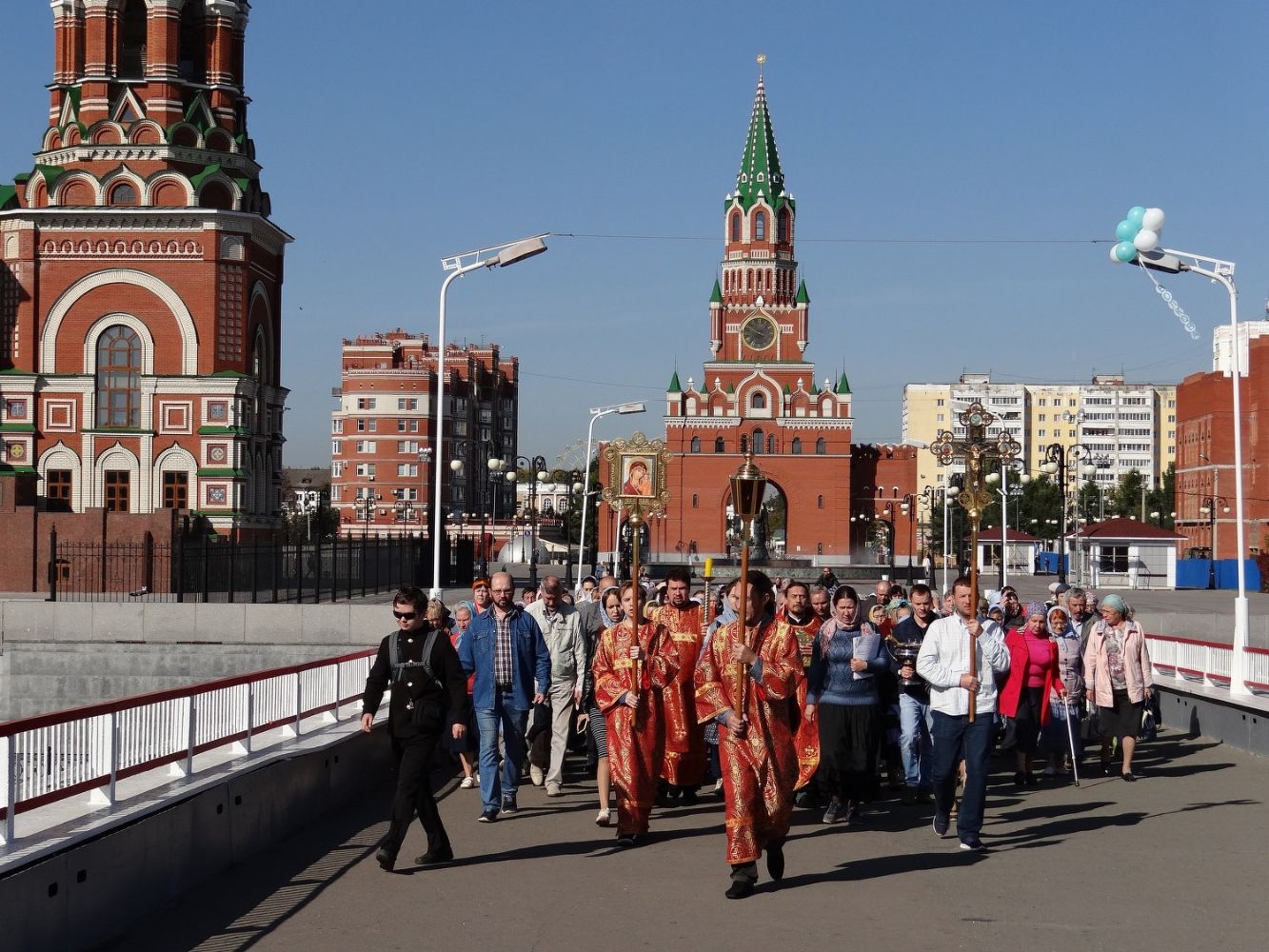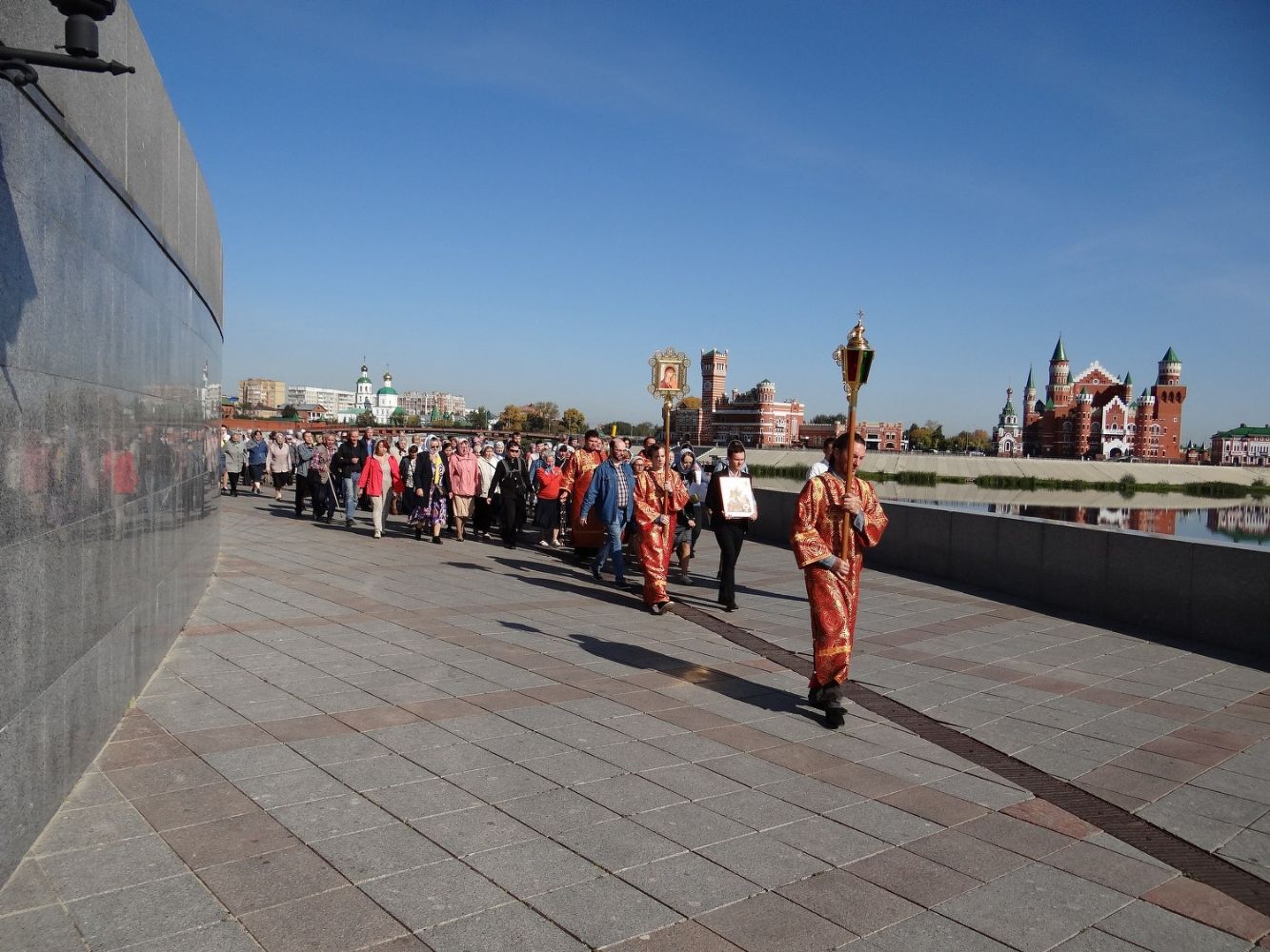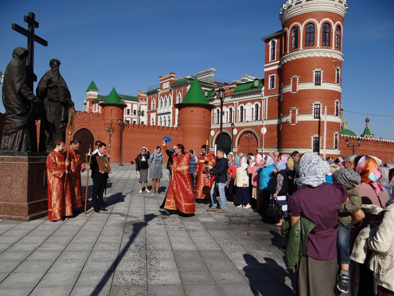 В Воскресенском соборе столицы в этот день была отслужена Божественная литургия, по окончании которой состоялся трезвенный Крестный ход. Его возглавил руководитель Православного общества трезвости Йошкар-Олинской епархии во имя иконы Пресвятой Богородицы «Неупиваемая Чаша» священник Андрей Кочаков. Молящиеся прошли по набережной реки Малой Кокшаги до площади Девы Марии и после прочтения праздничного Евангелия через Театральный мост направились в Заречную часть города к часовне святым благоверным князю Петру и княгине Февронии Муромским.