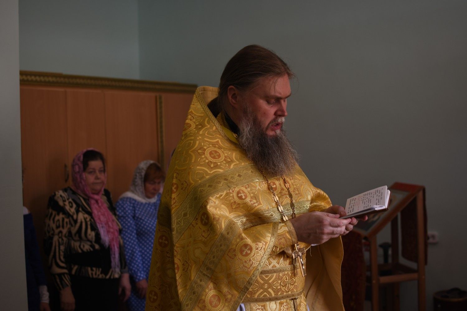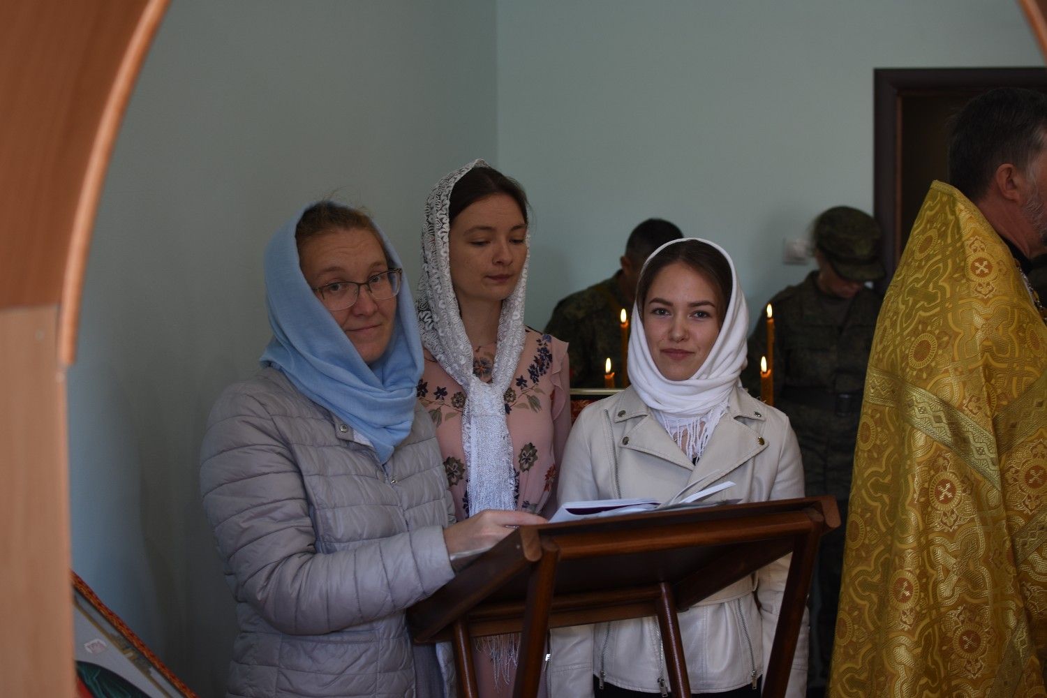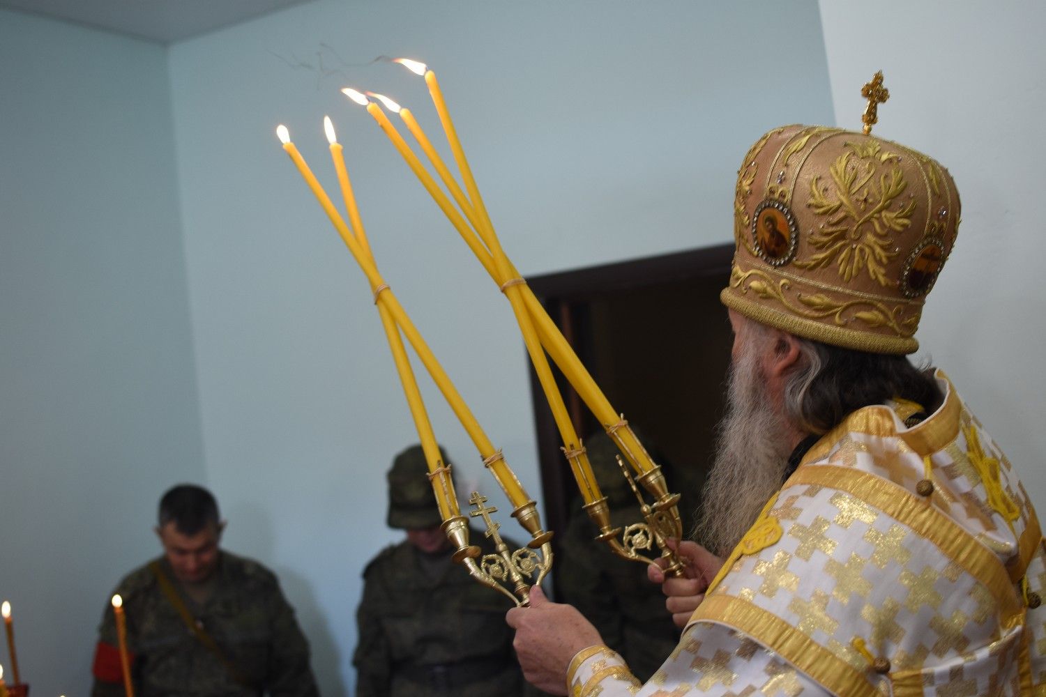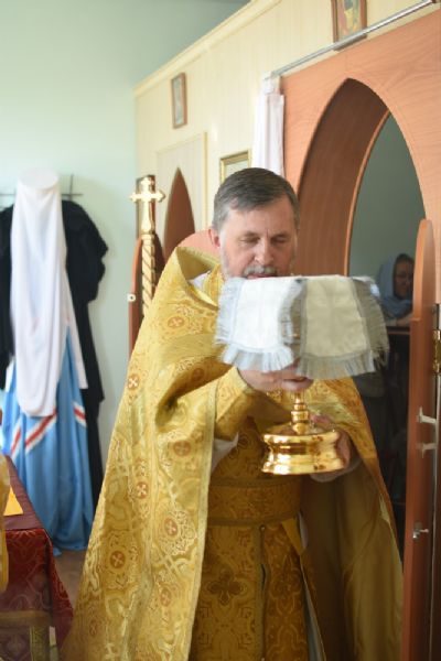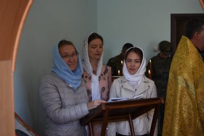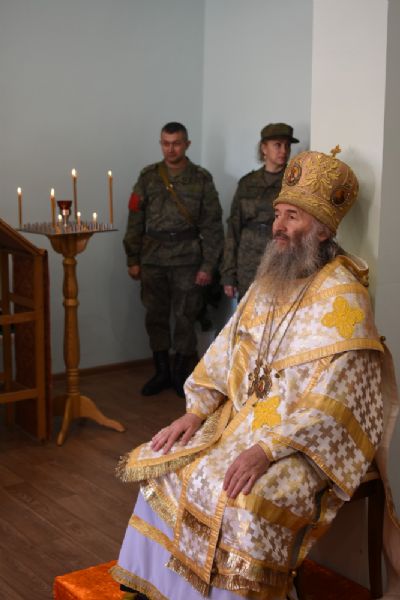 Владыке сослужили: полковой священник иерей Георгий Колотов, настоятель храма преподобного Серафима Саровского г. Йошкар-Ола протоиерей Александр Бачурин и клирик храма Рождества Пресвятой Богородицы с. Семеновка протодиакон Михаил Козловский. Песнопения исполнял хор под руководством регента Татьяны Черновой.