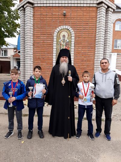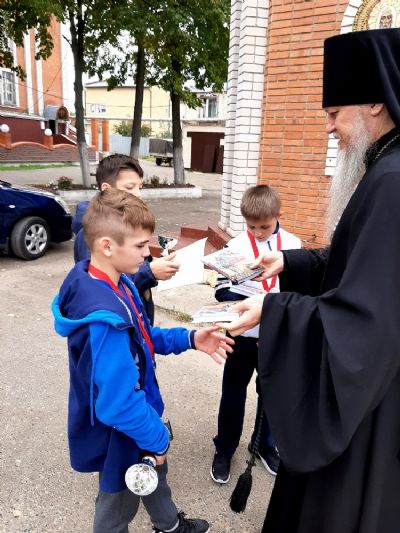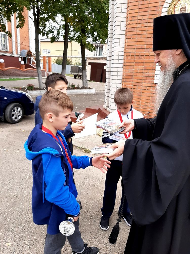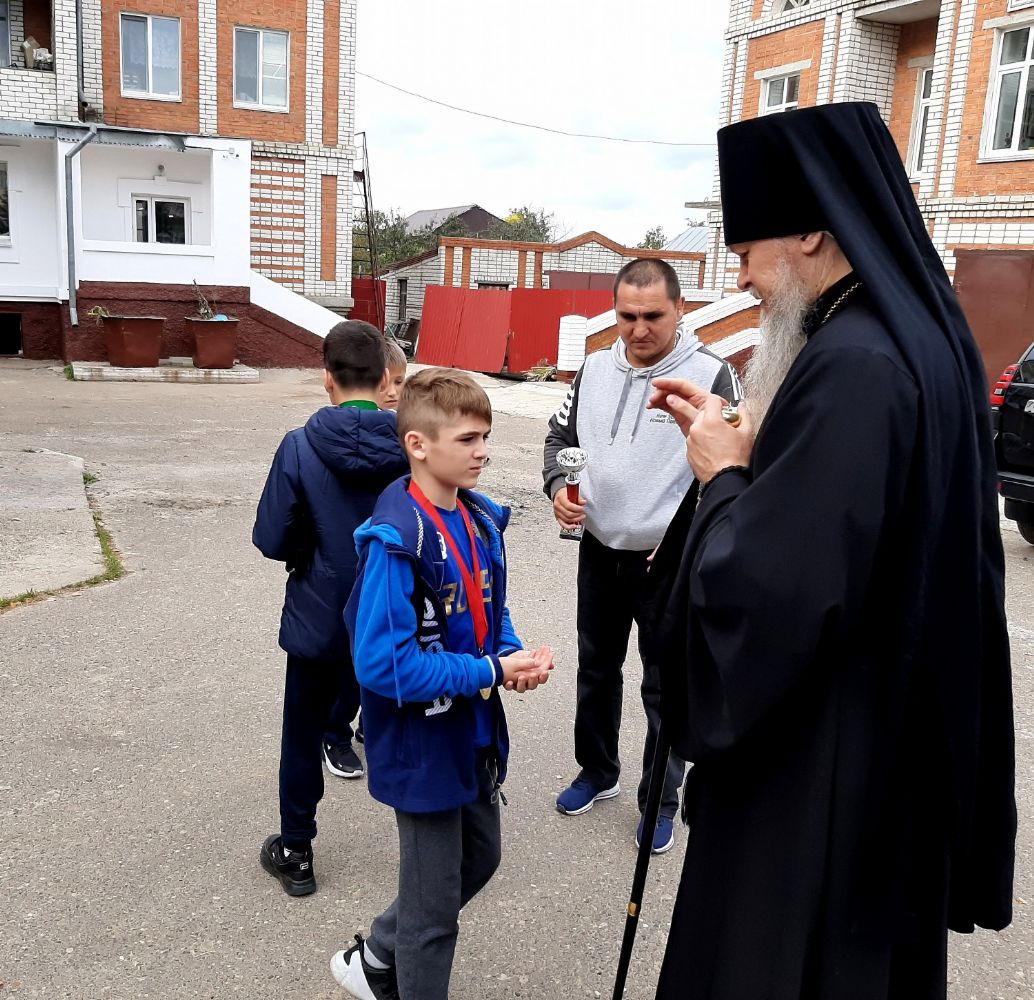 По возвращении с соревнований, сразу же с поезда, ребята вместе со своим наставником, ответственным по физкультуре и спорту Волжской епархии Н.И. Козловым, пришли с низким поклоном к епископу Феофану за его молитвенную помощь и благословение.