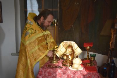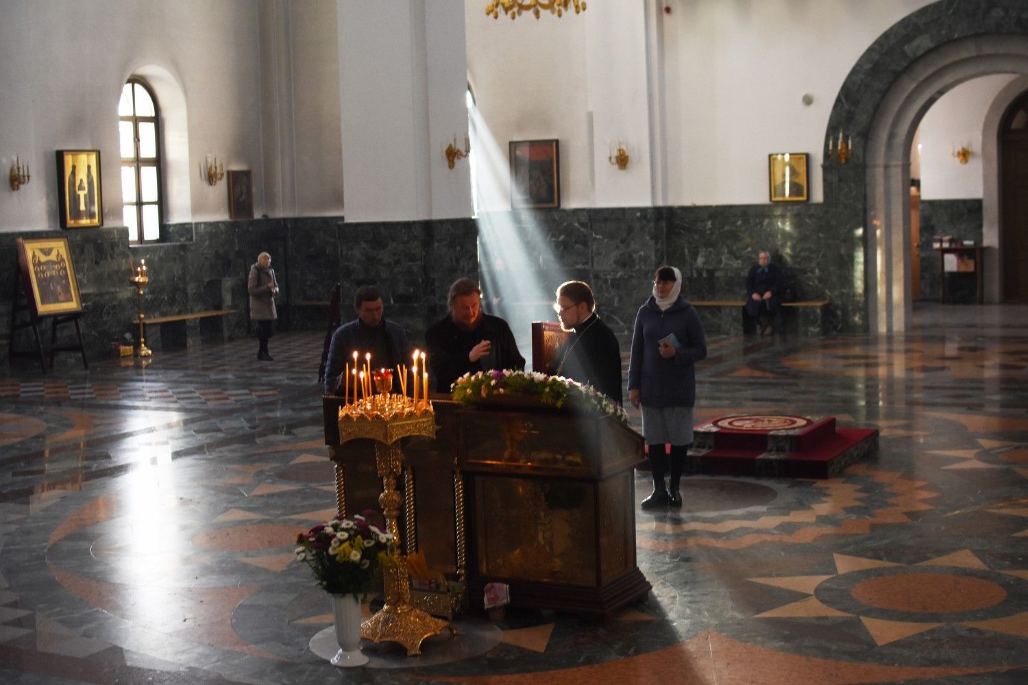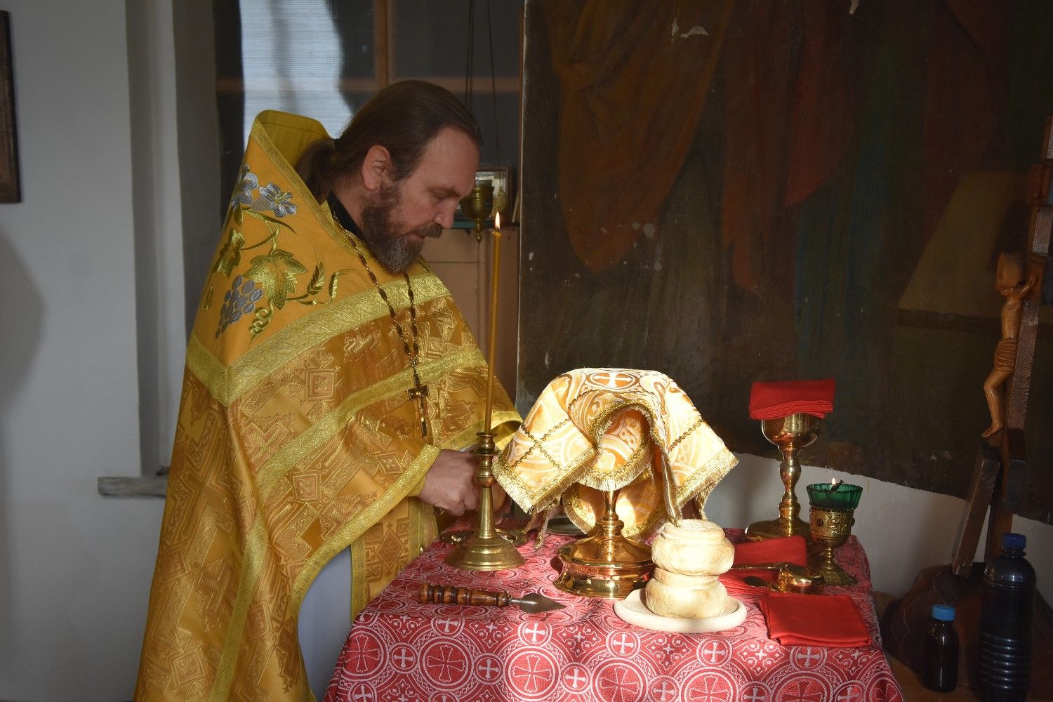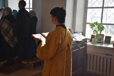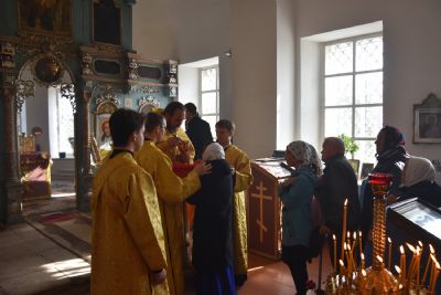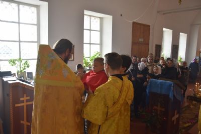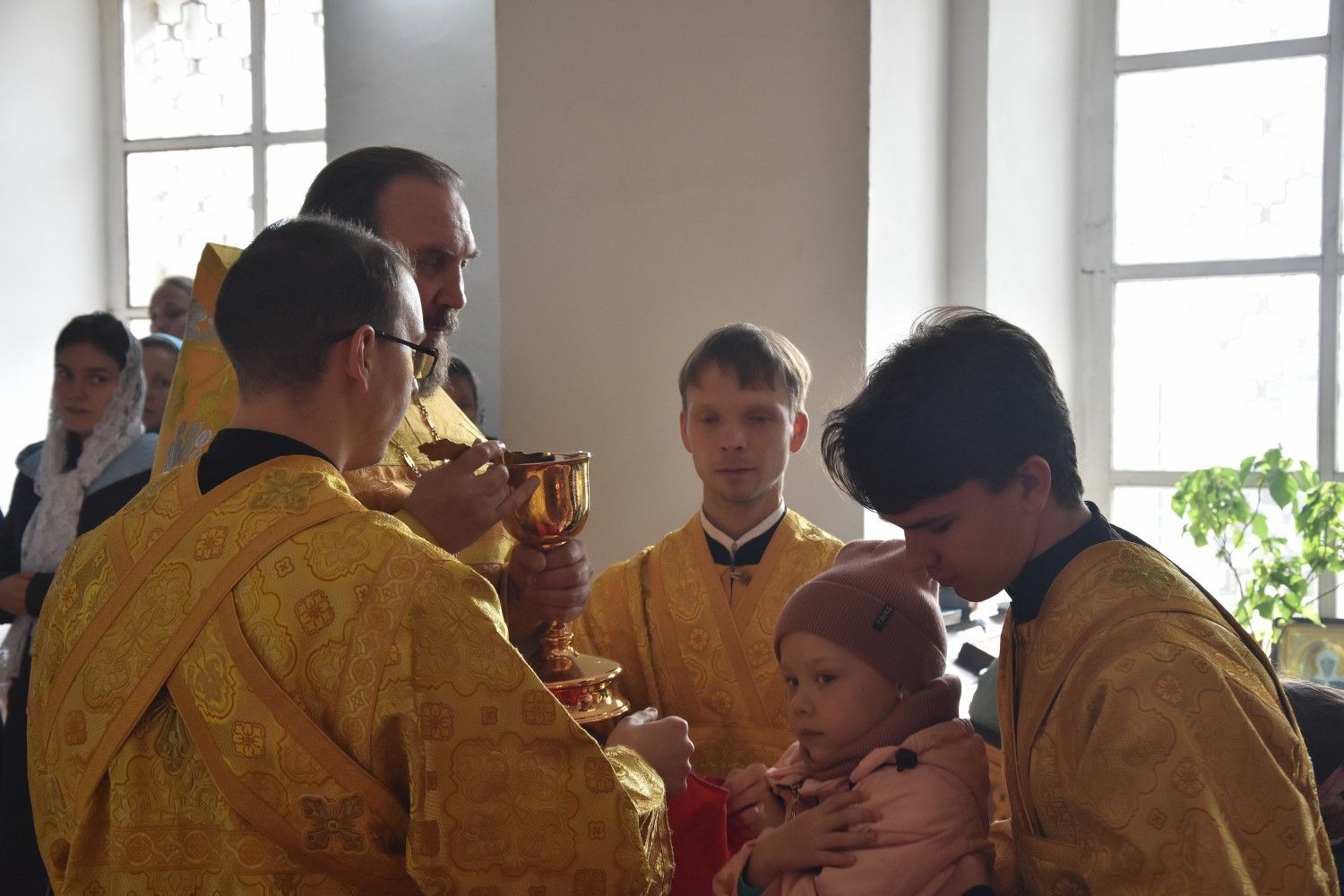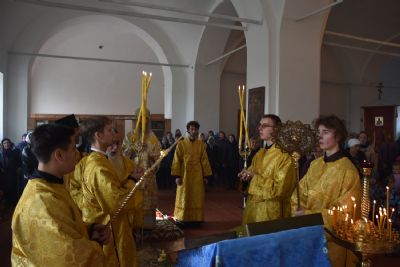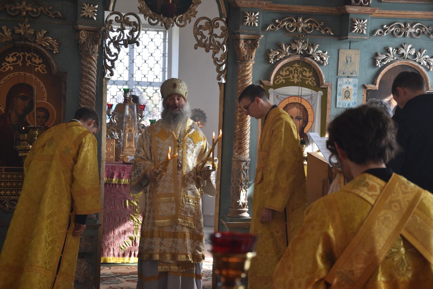 Богослужение началось торжественной встречей архиерея. Читались отрывки из послания апостола Павла Коринфянам о радости и огорчениях и из Евангелия от Матфея притча о брачном пире.