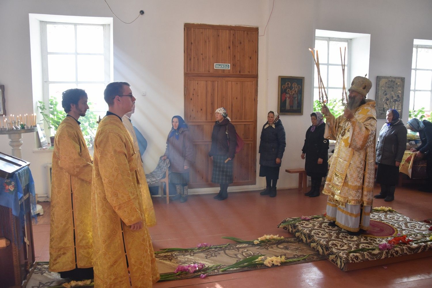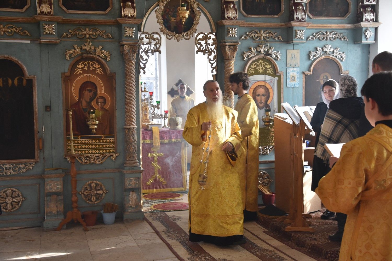 Владыке сослужили: секретарь Йошкар-Олинского епархиального управления иеромонах Серафим (Пасанаев), настоятель храма иерей Сергий Князев и клирик храма Рождества Пресвятой Богородицы села Семеновка протодиакон Михаил Козловский.