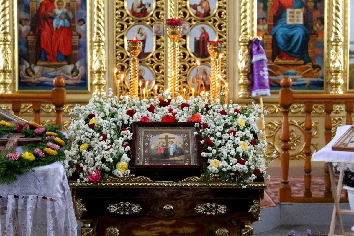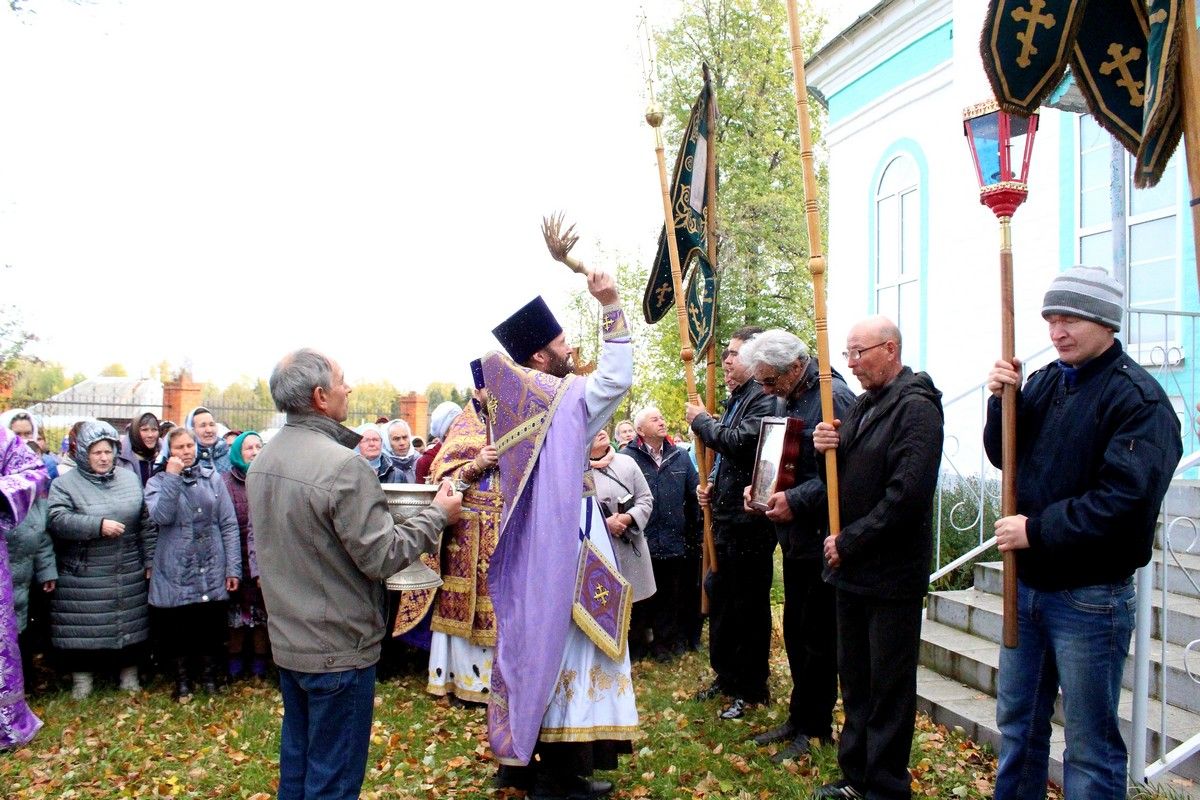 По окончании богослужения епископ Феофан, духовенство и прихожане совершили крестный ход вокруг храма, после чего владыка поздравил всех с престольным праздником и обратился к верующим со словами проповеди: «Во имя Отца и Сына и Святого Духа! Возлюбленные о Господе всечестные отцы, братья и сёстры! Сегодня, по Милости Божией, мы собрались в этом прекрасном храме, чтобы прославить Бога, преклониться Его Честному и Животворящему Кресту и вместе с тем порадоваться престольному празднику, ибо главный престол в этом храме освящён в честь Воздвижения Честного и Животворящего Креста Господня.