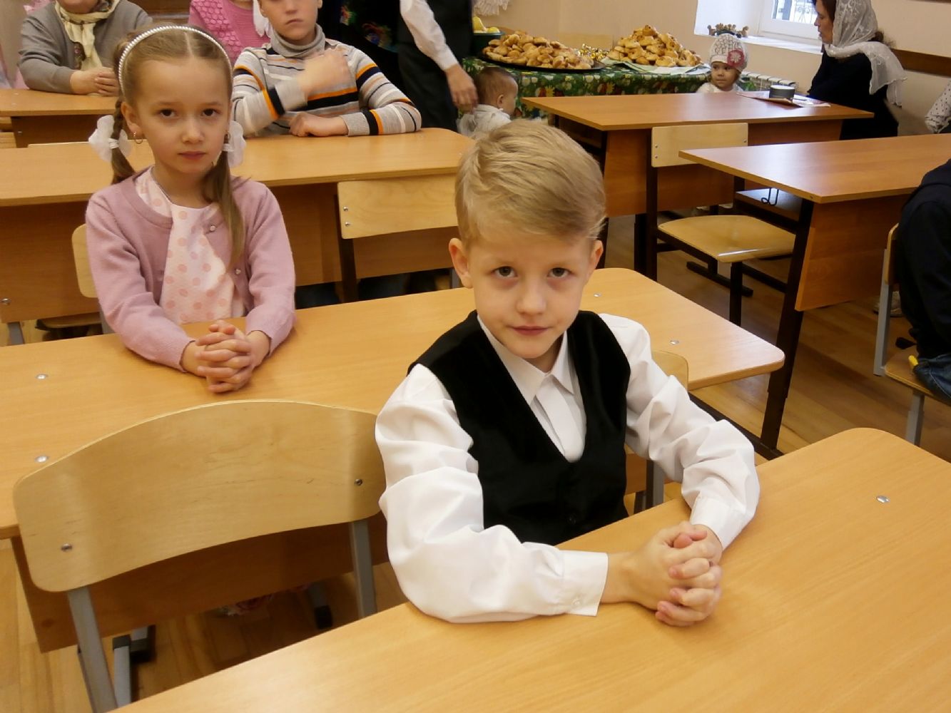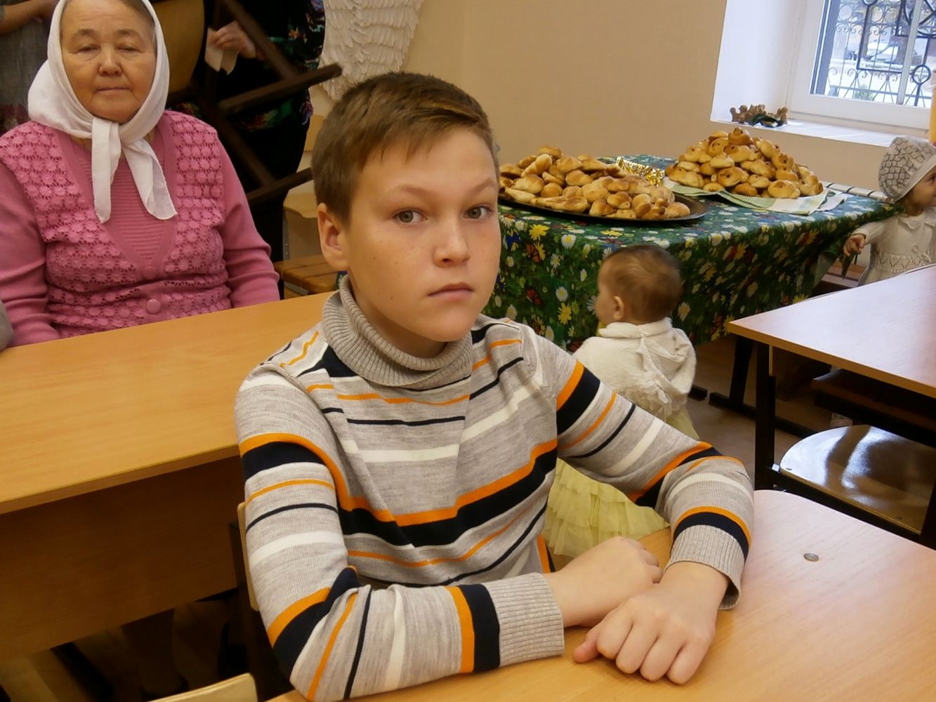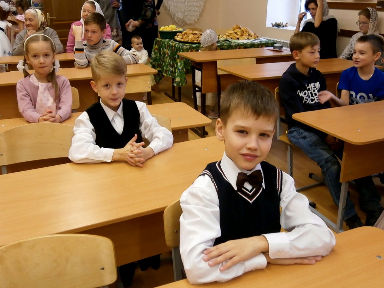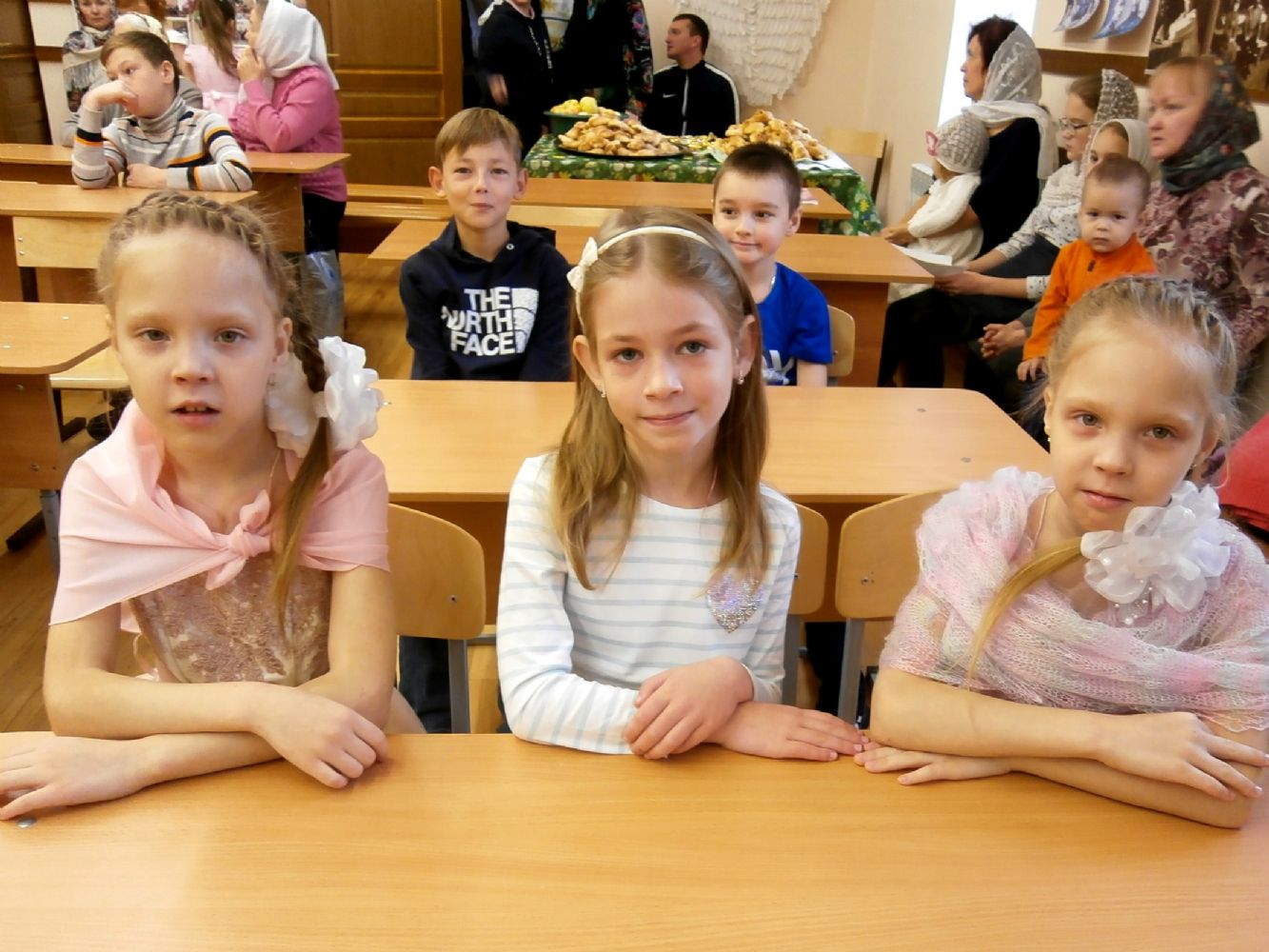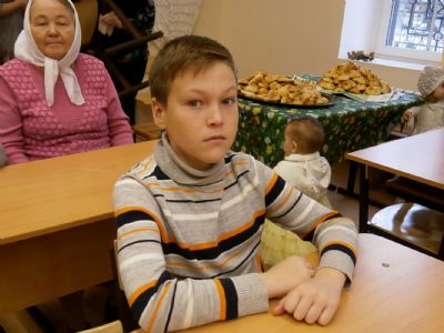 Гостей собралось много, но всем хватило места в уютном классе воскресной школы. Концерт начался с музыкально-поэтической композиции о подвиге святых мучениц в исполнении воспитанников. Родители ребят тоже подготовили стихи и песни. Не остались в стороне и приглашенные гости – Маргарита Серафимовна Филимонова спела под гитару романсы и песни прошлых лет.