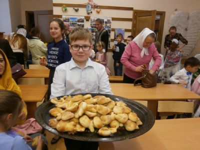 В завершение праздника всех гостей и именинников угостили жаворонками, которых специально для праздника выпекли в трапезной храма.
