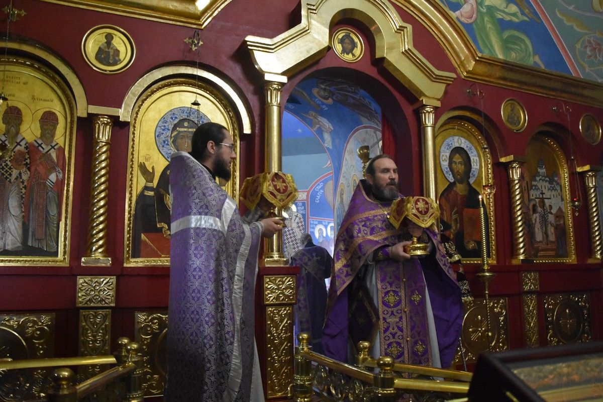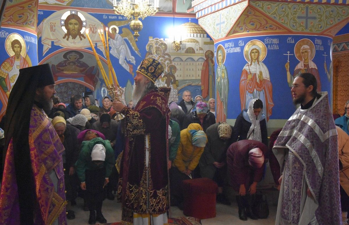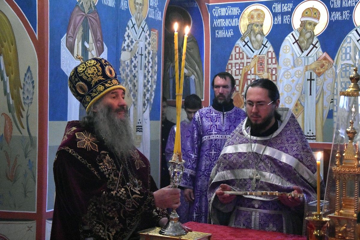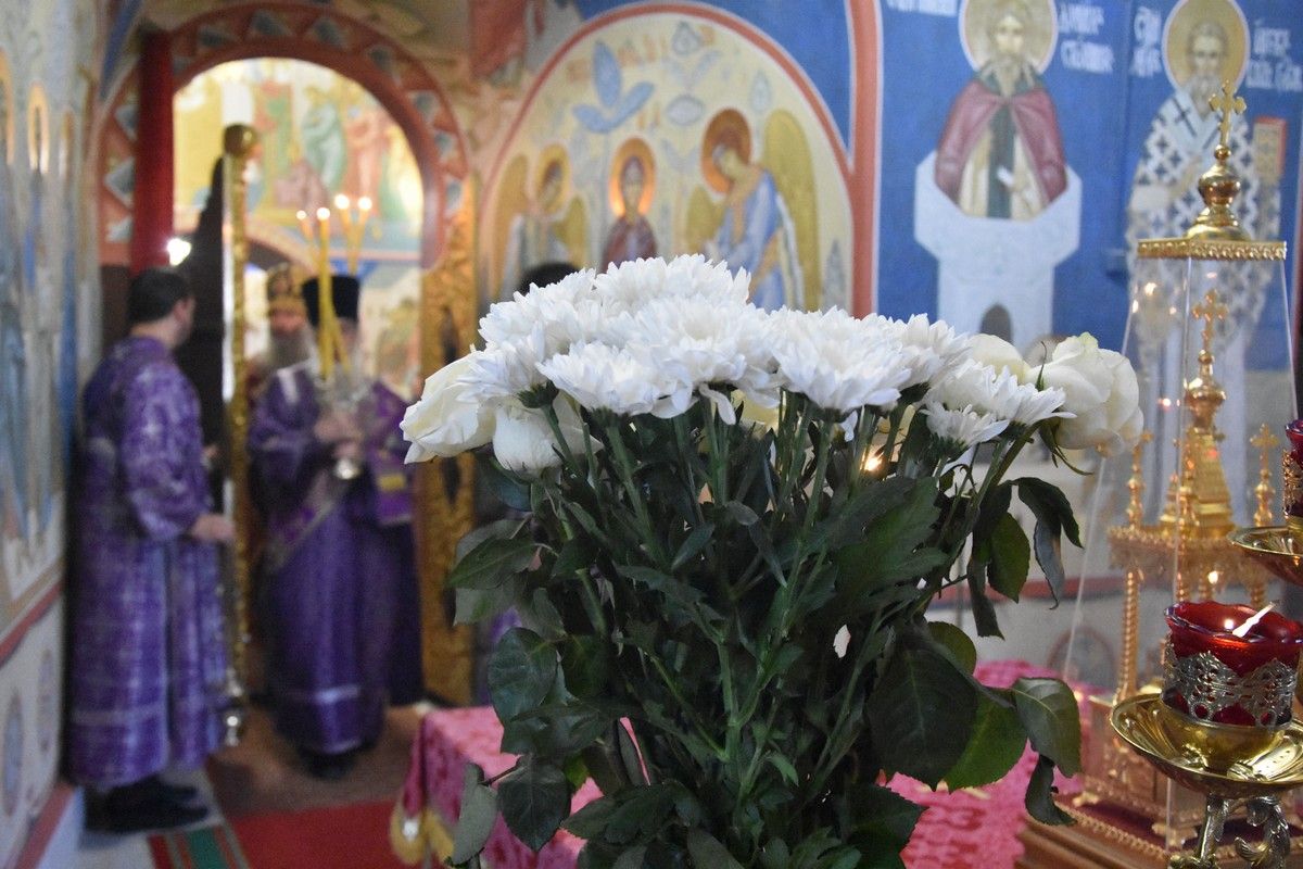 Владыке сослужили: секретарь Йошкар-Олинского епархиального управления иеромонах Серафим (Пасанаев), клирик Вознесенского собора иерей Димитрий Копылов и клирик храма Рождества Пресвятой Богородицы села Семеновка протодиакон Михаил Козловский.