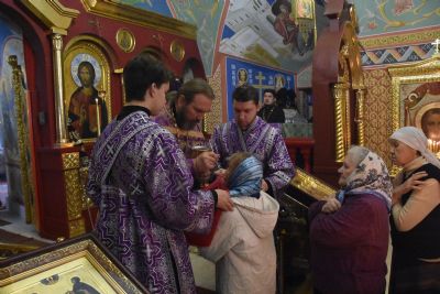 После Литургии прошёл крестный ход вокруг храма с кроплением святой водой и чтением Евангелия. В своей проповеди владыка рассказал о истории возникновения праздника.