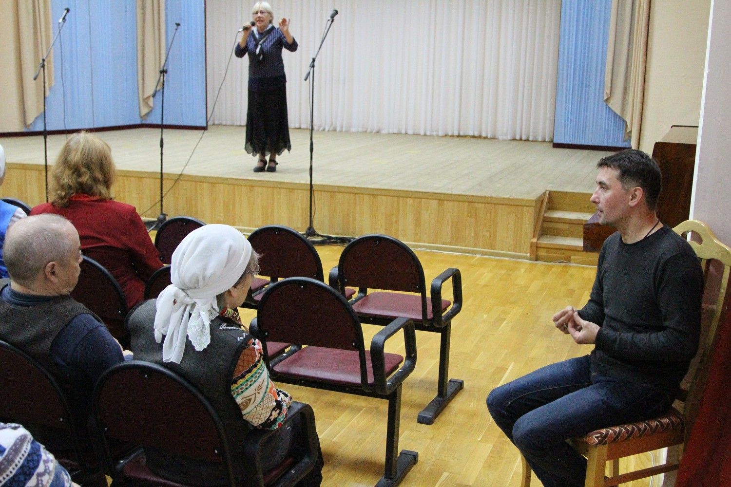 Стихи «Люди пожилые, сердцем молодые» продекламировал работник культуры г. Йошкар-Олы Евгений Самусев. А артист театра им. Шкетана Иван Соловьев исполнил песню Окуджавы «Виноградная косточка».