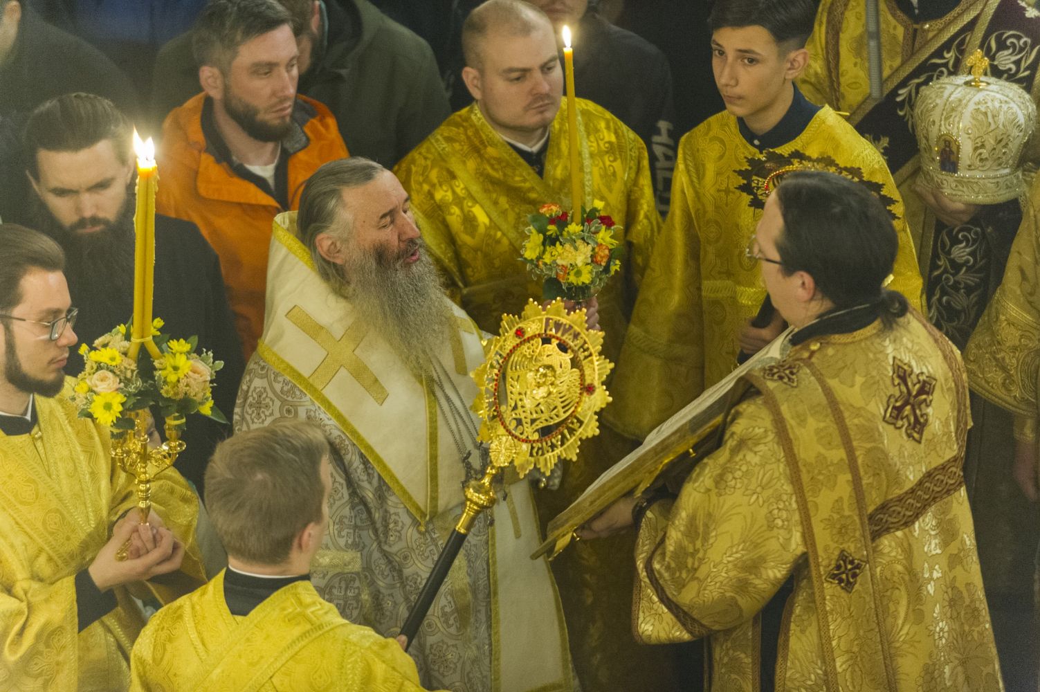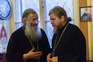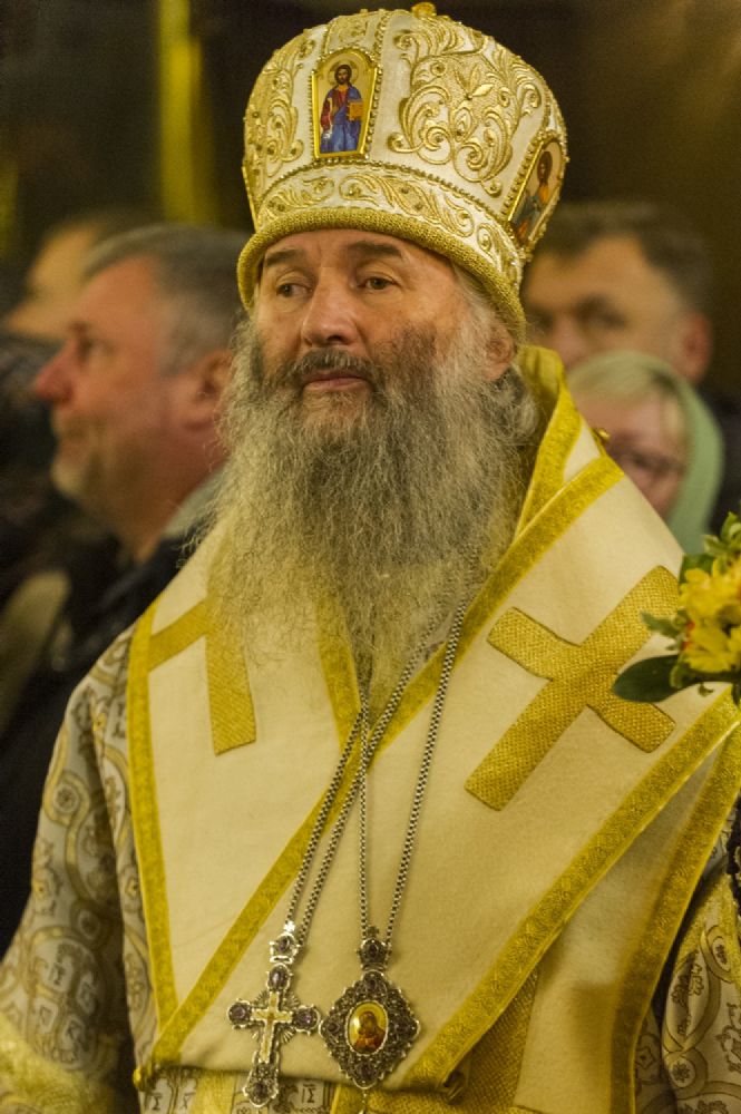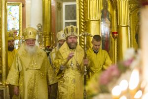 Его Высокопреосвященству сослужили митрополит Новгородский и Старорусский Лев, митрополит Йошкар-Олинский и Марийский Иоанн, епископ Юрьевский Арсений, архимандрит Иосиф (Пальчиков), протоиерей Николай Соколов, благочинный Псково-Печерской обители иеромонах Прохор (Андрейчук) и насельники монастыря в священном сане.