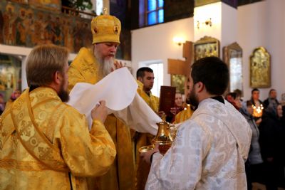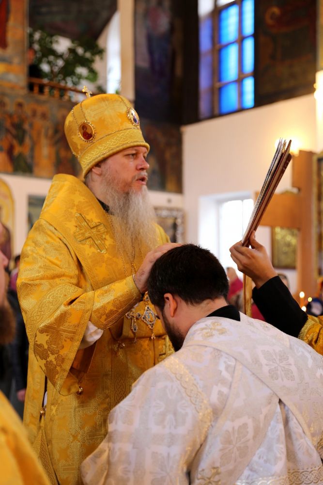После Евхаристического канона была совершена хиротония иподиакона Андрея Легостаева во диакона. Сорокоуст и дальнейшее служение новорукоположенный диакон Андрей будет проходить в соборе святителя Николая Мирликийского г. Волжска.