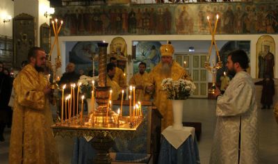 За богослужением владыке сослужило духовенство собора. Пел хор под управлением Тимофея Протасова.