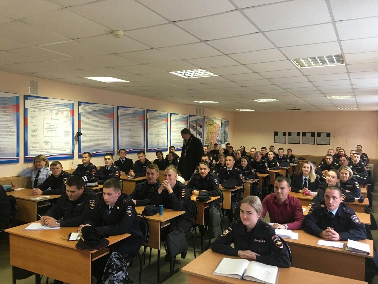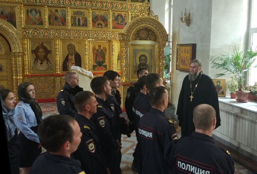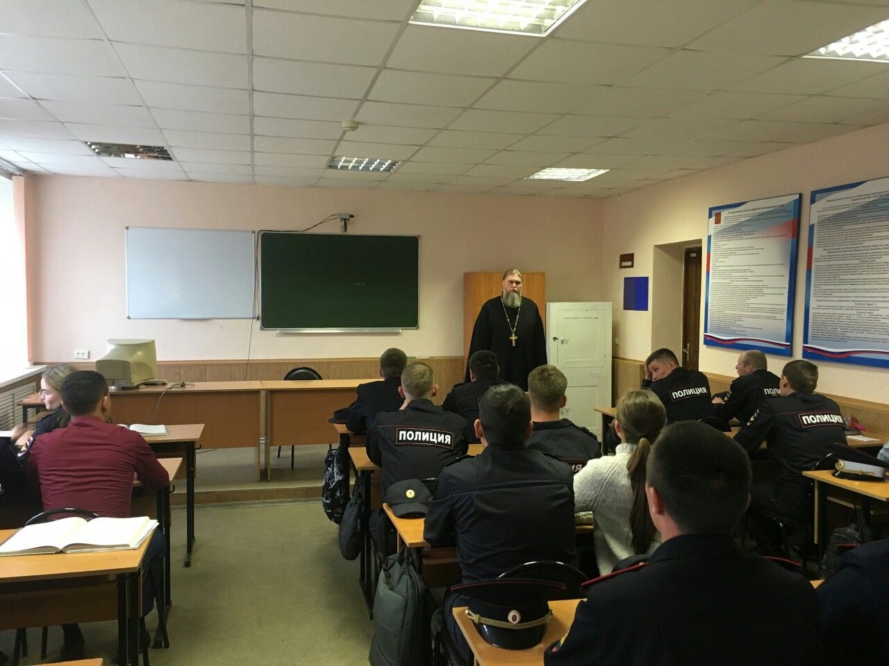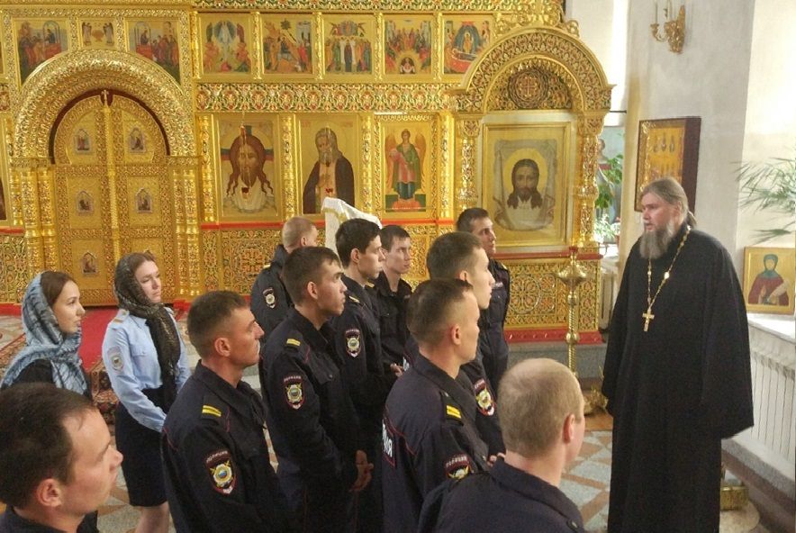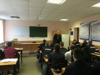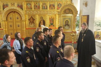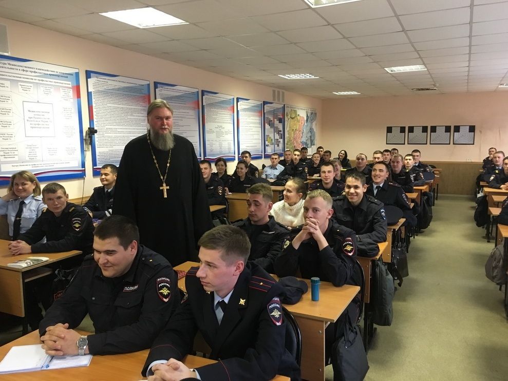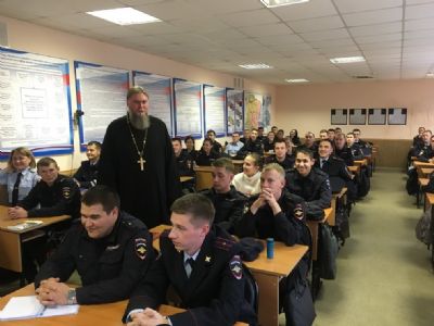 Отрадно отметить, что будущие служители закона, помимо высокой профессиональной подготовки, внимательно изучают и духовно-нравственные вопросы, часть из которых непосредственно связана с религиозной жизнью. Лекционные часы защитников правопорядка расчитаны как на аудиторную встречу, так и на посещение храмовых сооружений. Знакомит их с этой непростой тематикой настоятель храма преподобного Серафима Саровского г.йошкар-ола протоиерей Александр Бачурин.