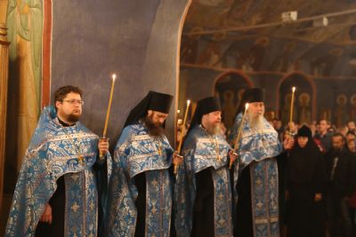 В канун праздника Покров Пресвятой Владычицы нашей Богородицы и Приснодевы Марии владыка Феофан молился на Всенощном бдении в Покровском пределе Спасо-Преображенского собора Новосспаского мужского монастыря. В Спасо-Преображенском соборе владыка поклонился местночтимой чудотворной иконе Божией Матери "Всецарица".