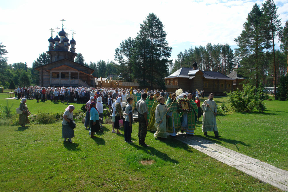 Праздничная Божественная литургия, которую возглавил архиепископ Йошкар-Олинский и Марийский Иоанн, прошла в торжественной обстановке. Так же по сложившейся уже традиции богослужение прошло на открытом воздухе рядом с храмом, т.к. сам храм небольшой и не может вместить всех паломников. Затем участники совершили крестный ход и водосвятный молебен на реке Студенке и Владыка щедро окропил всех святой водой.