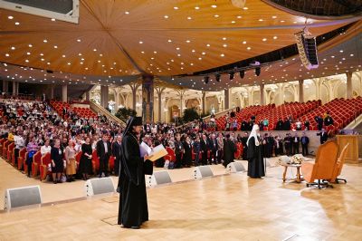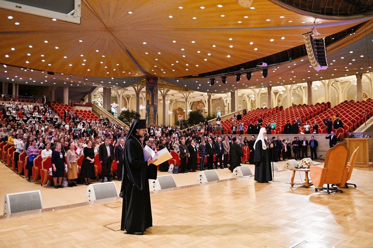 «Сегодня мы, спустя три года после первого съезда, собрались здесь, в Зале церковных соборов Храма Христа Спасителя, чтобы вновь увидеть друг друга, поделиться опытом, пообщаться на актуальные темы, связанные с традициями хорового пения и приходского регентского и певческого служения.