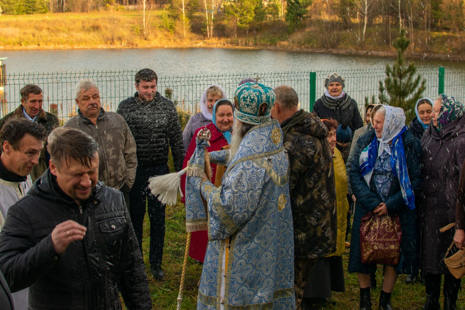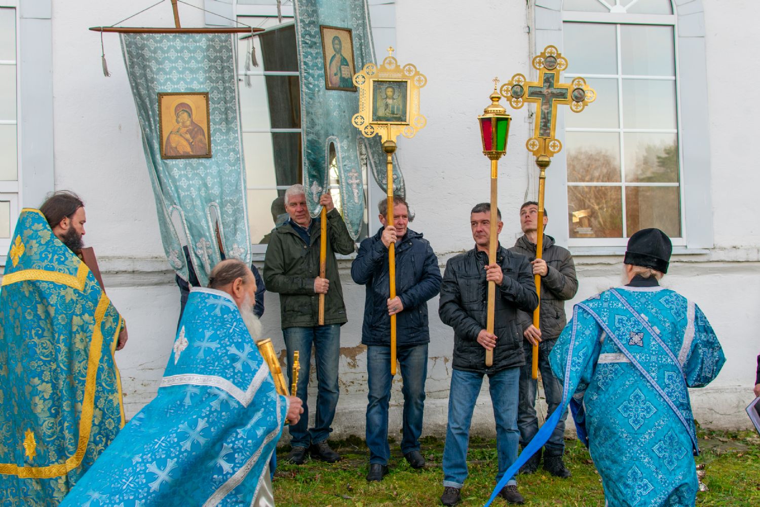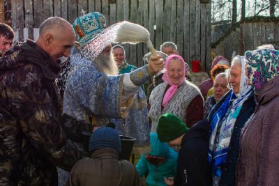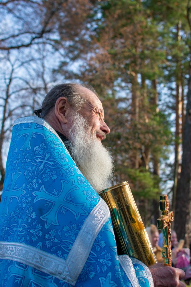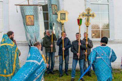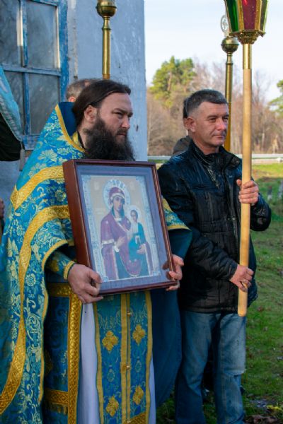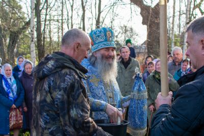 После Литургии прошел крестный ход вокруг храма с кроплением святой водой, чтением Евангелия и молитвы перед иконой Божией Матери «Иверская».