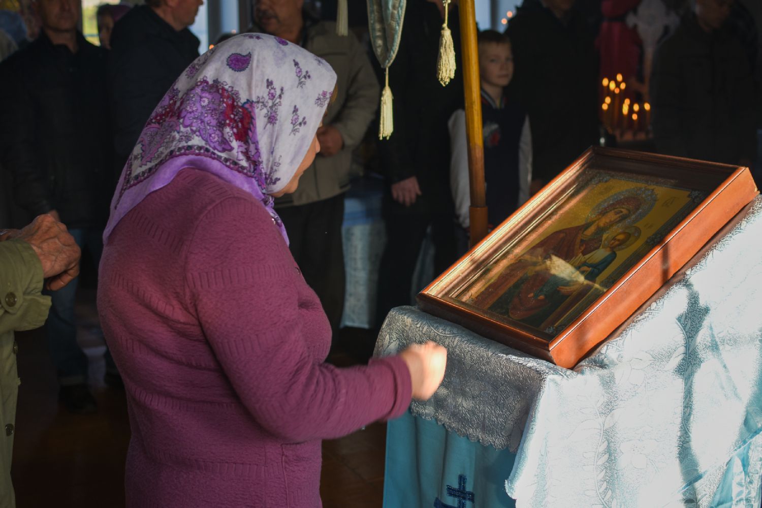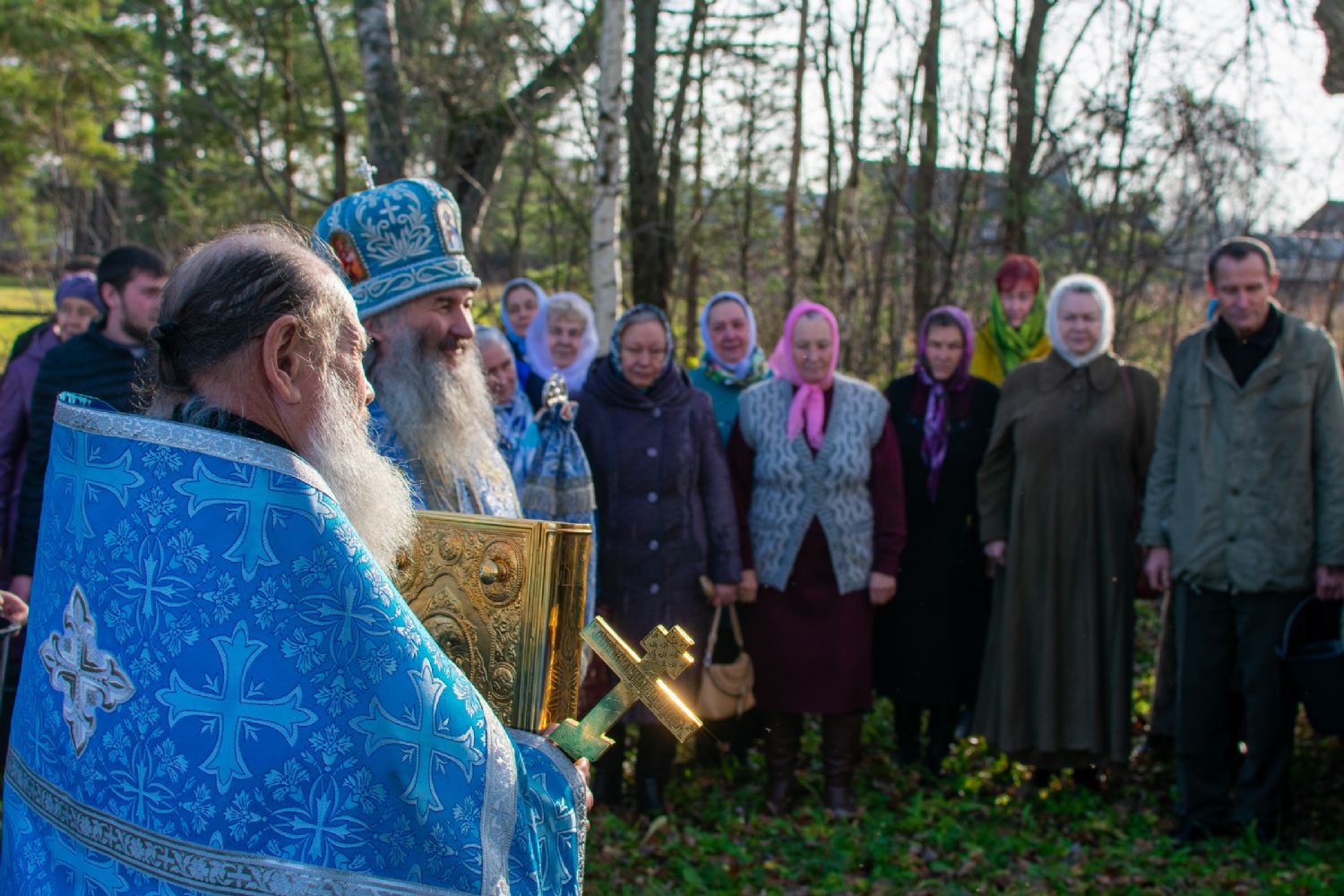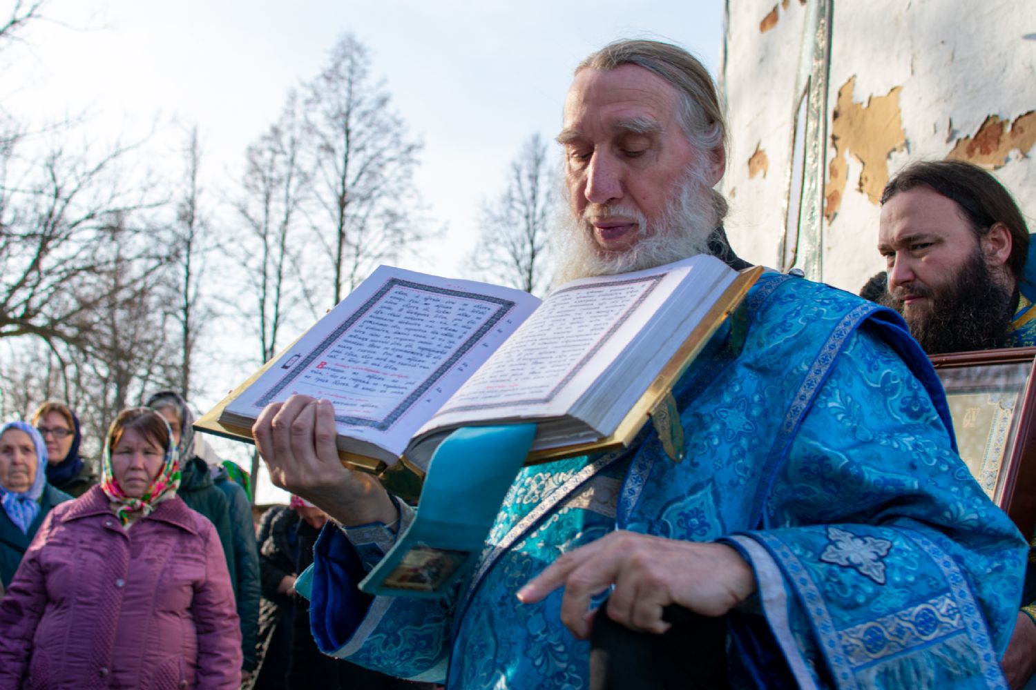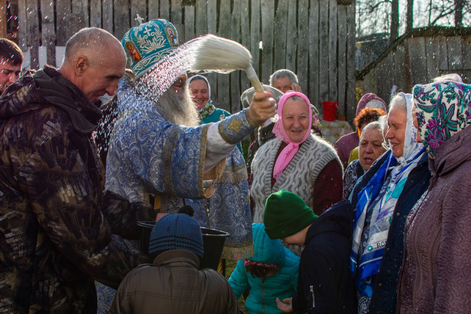 После Литургии прошел крестный ход вокруг храма с кроплением святой водой, чтением Евангелия и молитвы перед иконой Божией Матери «Иверская».