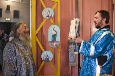 На Литургии читались отрывки из послания апостола Павла к Филиппийцам (2 глава) о воплощении Бога-Слова и из Евангелия от Луки (10-11 главы) о служении сестер Марфы и Марии и блаженстве Матери Божией.