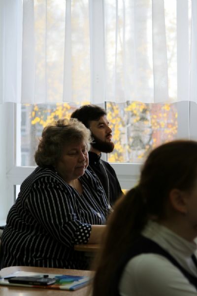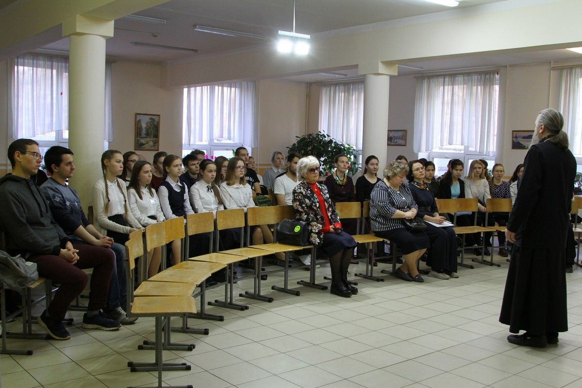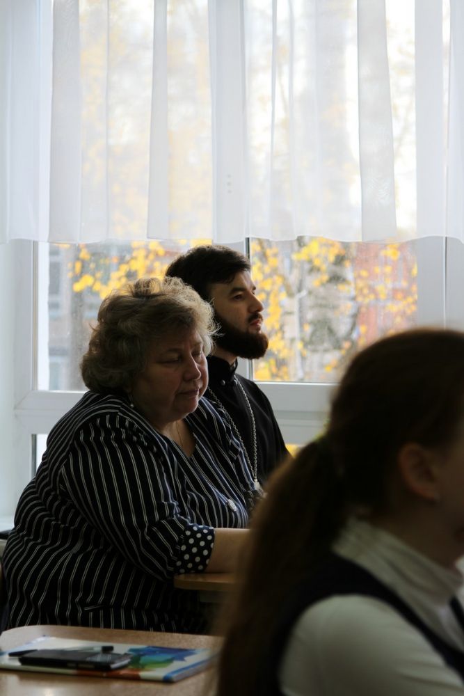 Перед тем как учащиеся подошли к изучению предания, отец Сергий затронул такое глубинное понятие, как «историческая память». К его осмыслению ребята подошли, анализируя текст стихотворения Роберта Рождественского «За того парня».