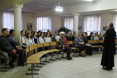 Также отец Сергий рассказал о россиянах как об уникальном новозаветном народе, о тяжких периодах в его истории, когда православная вера, наши святые стали спасительным щитом для всего Отечества.