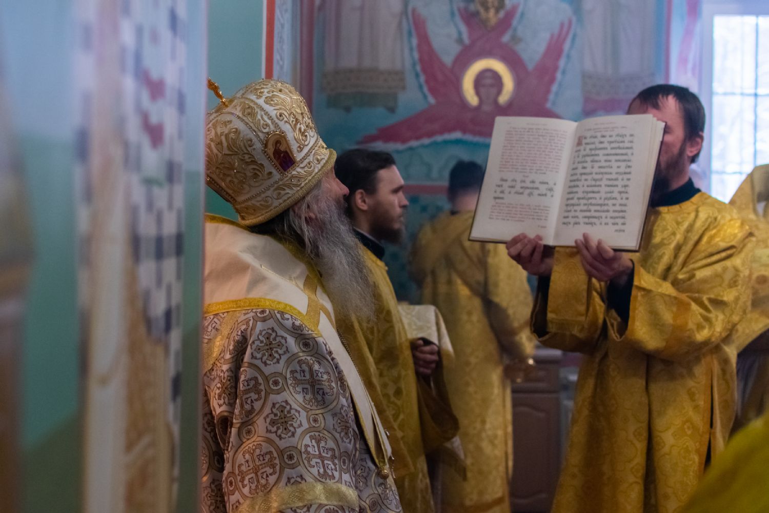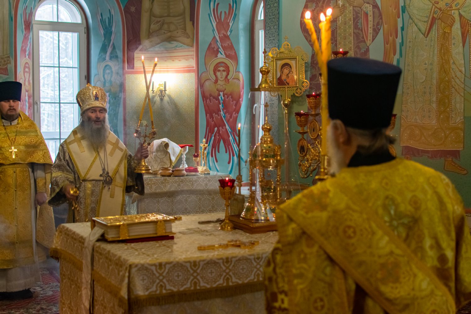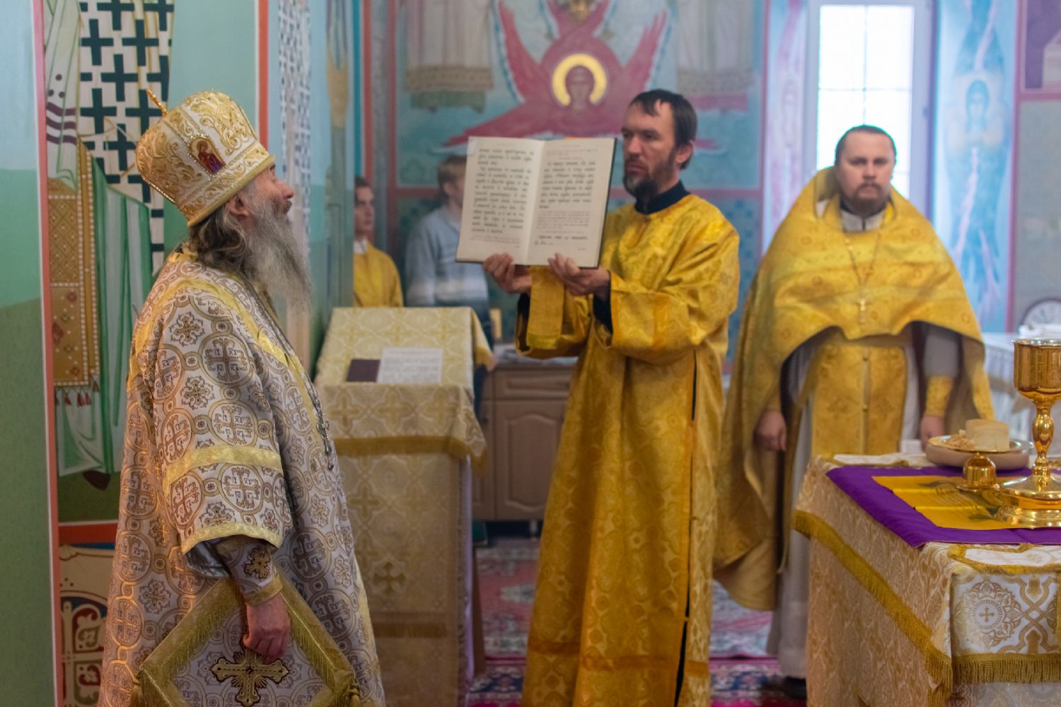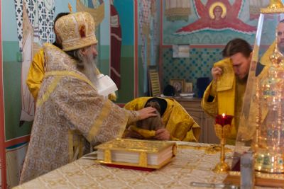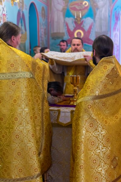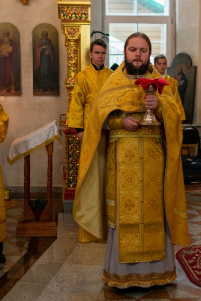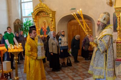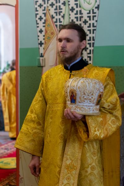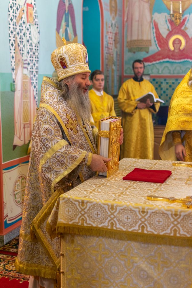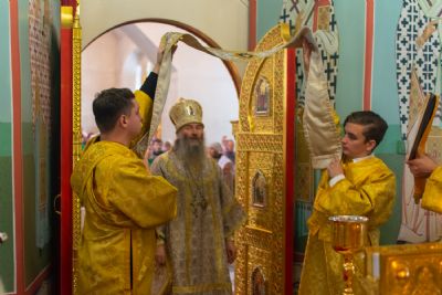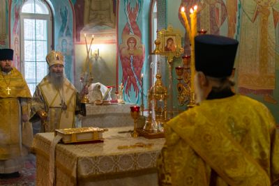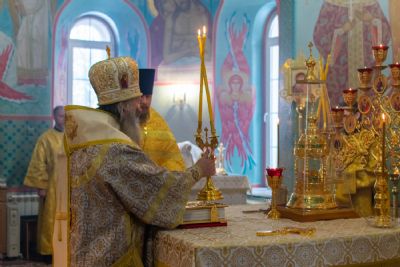 Владыке сослужили настоятель храма протоиерей Александр Бачурин, клирики храма иереи Константин Домрачев, Виктор Умрихин, диакон Димитрий Лукьянов и клирик храма Рождества Пресвятой Богородицы с. Семеновка протодиакон Михаил Козловский. Песнопения исполнял хор храма.