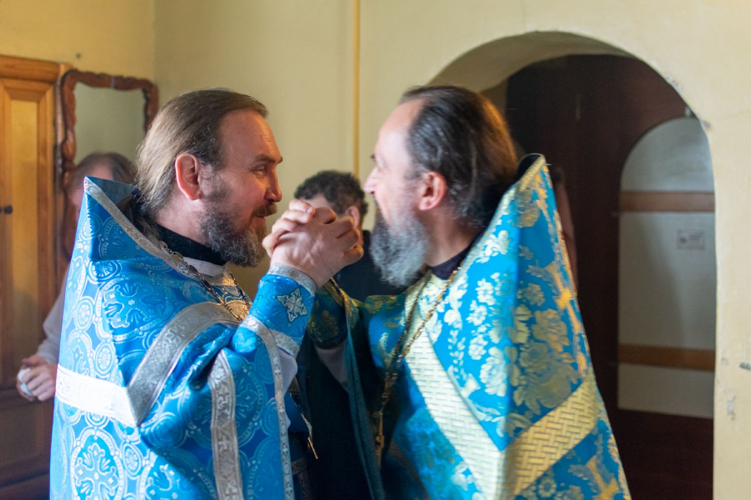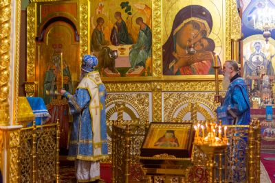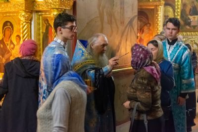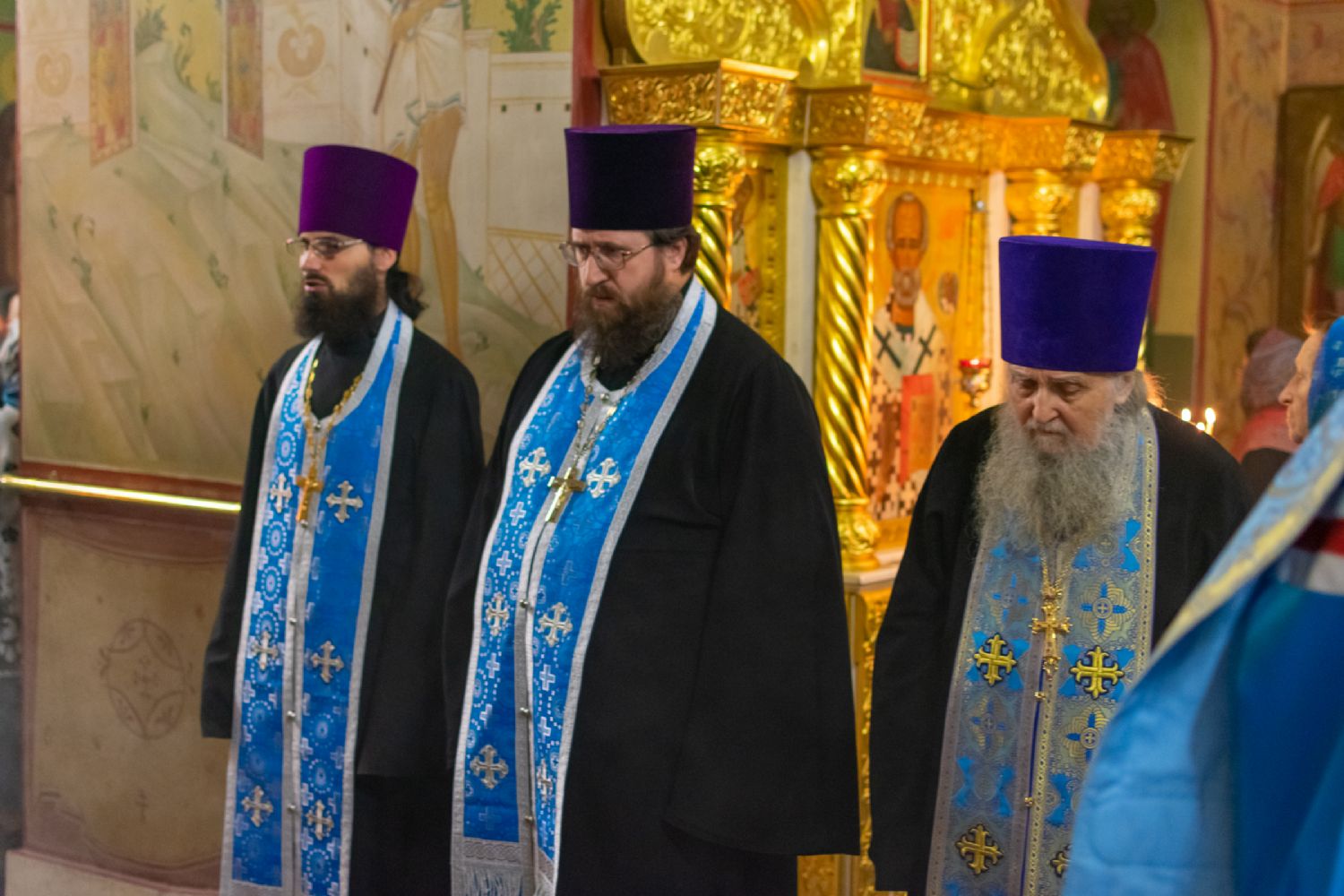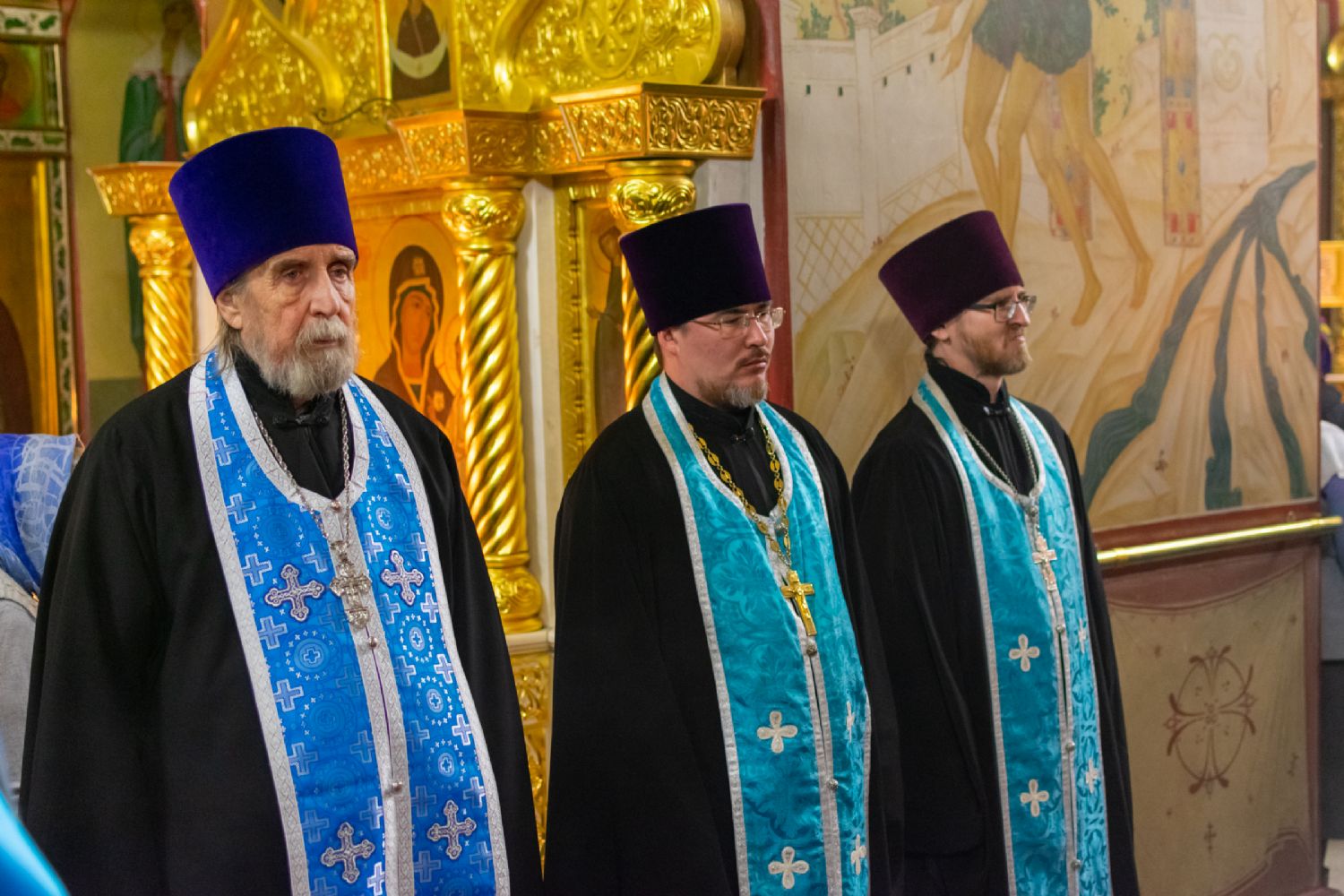 За Всенощным бдением Владыке сослужили настоятель Вознесенского собора протоиерей Евгений Кутырев, клирики собора протоиерей Георгий Втюрин, иереи Александр Козлов, Владимир Глебов, Александр Деревяшкин, диакон Владимир Лихачев и клирик храма Рождества Пресвятой Богородицы с. Семеновка протодиакон Михаил Козловский. Песнопения исполнял хор храма.