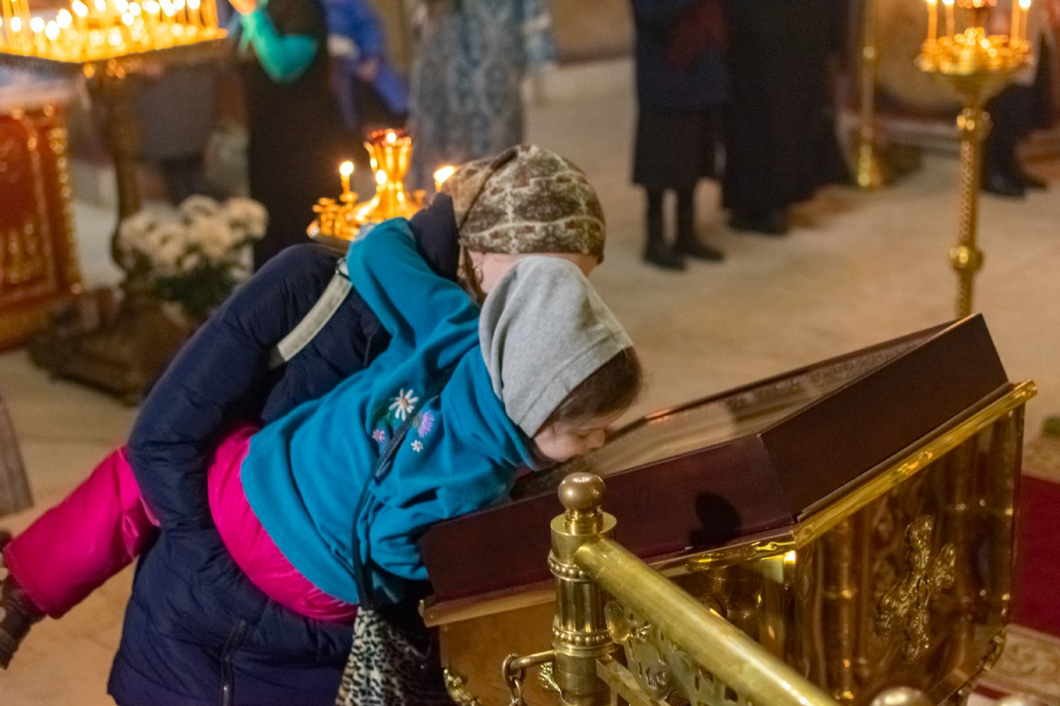 Читались зачала из послания апостола Павла к Филиппийцам о воплощении Сына Божия и из Евангелия от Луки о служении Марфы и Марии.