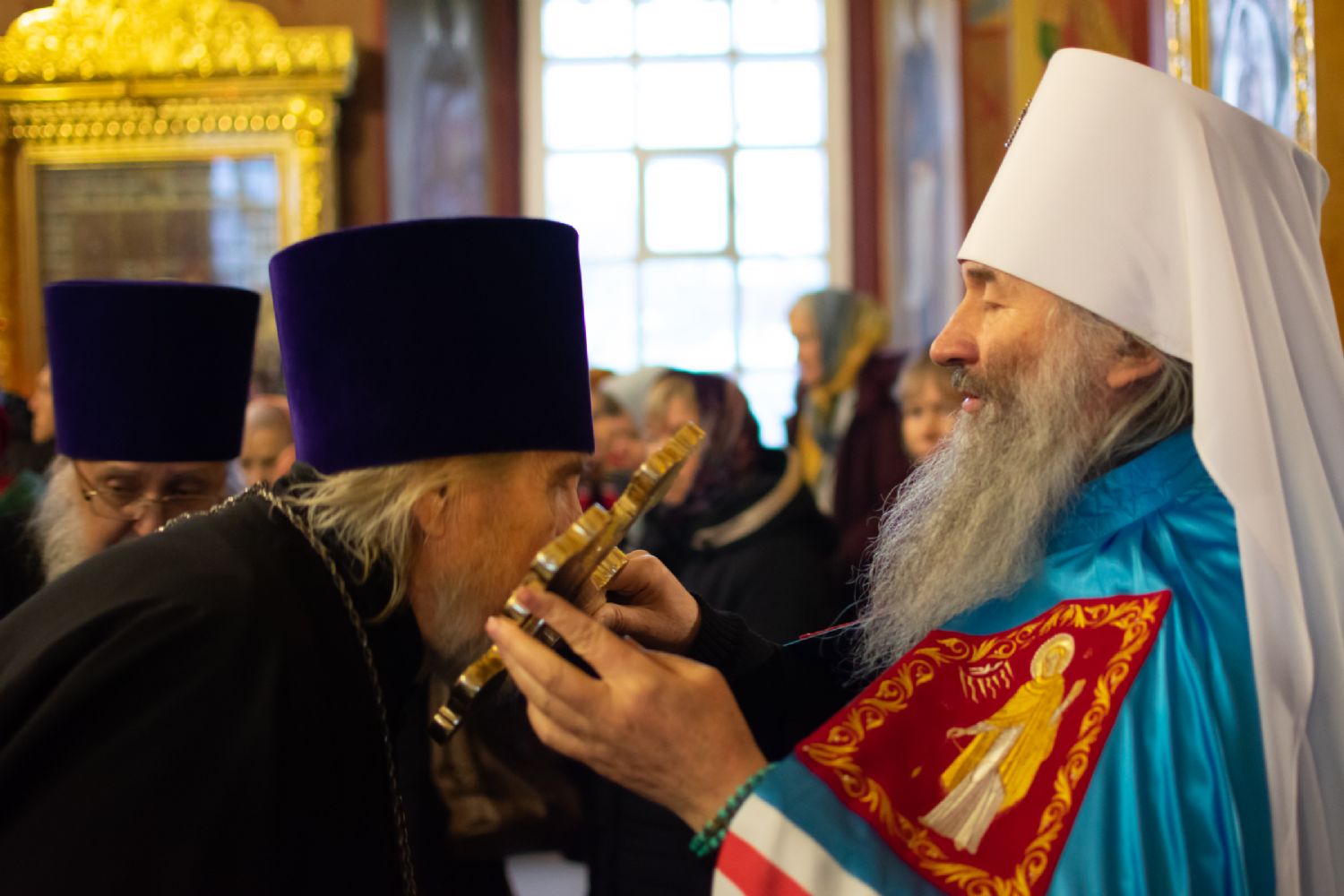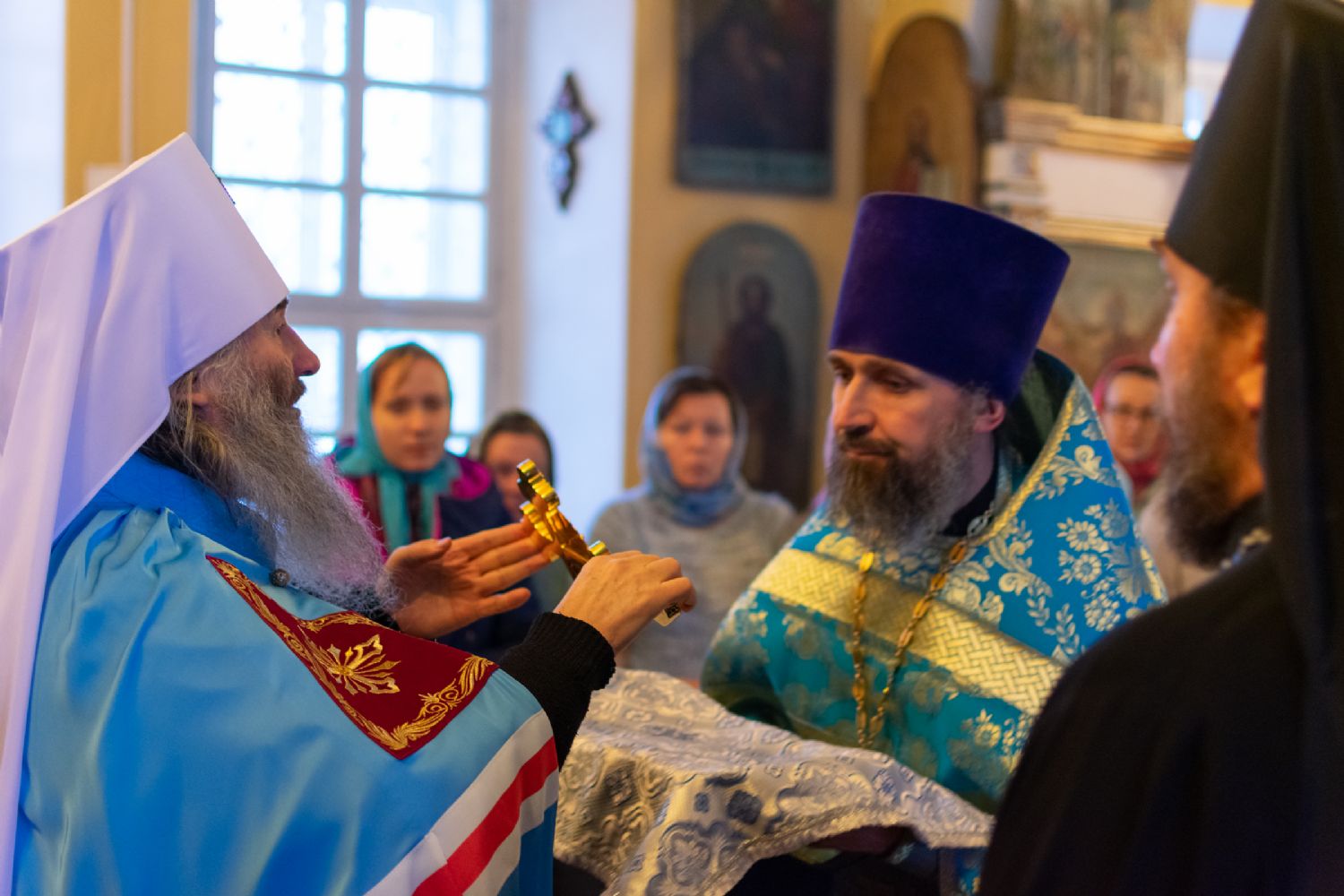 Богослужение началось торжественной встречей Владыки и облачением в центре храма.
