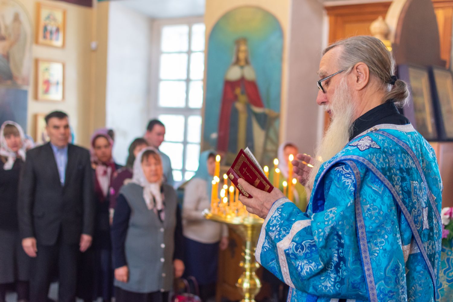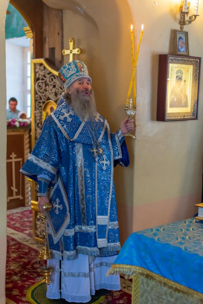 За Литургией митрополиту Иоанну сослужили секретарь Йошкар-Олинского епархиального управления иеромонах Серафим (Пасанаев), настоятель Казанского храма д. Нурма иерей Александр Коваль, клирик храма Рождества Пресвятой Богородицы с. Семеновка протодиакон Михаил Козловский и клирик Благовещенского кафедрального собора диакон Игорь Коваль. Песнопения исполнял мужской хор храма Сретения Господня с. Кучки.