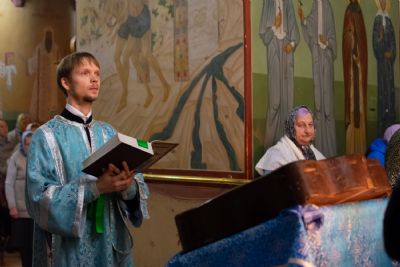После Литургии прошел крестный ход вокруг храма с кроплением святой водой и чтением Евангелия.