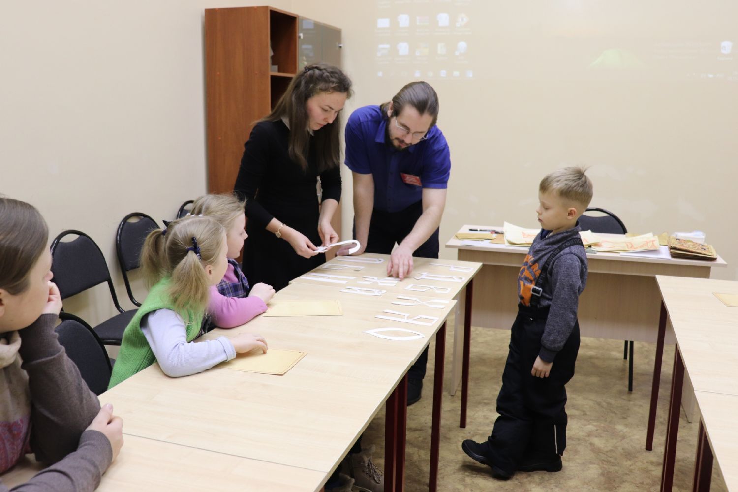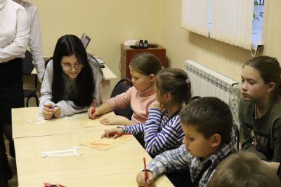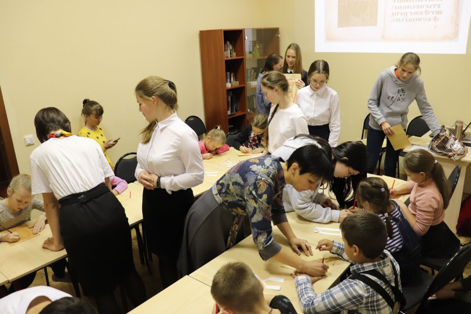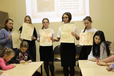 По окончании программы ребята провели творческое занятие по основам славянской каллиграфии вместе с учащимися гимназии им. С. Радонежского г Йошкар-Олы. Текст художественного письма, которое предлагалось оформить на мастер-классе, был выбран неслучайно: это было поздравление Музею истории Православия с 3-летием со Дня рождения!