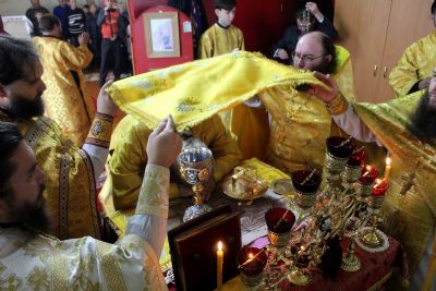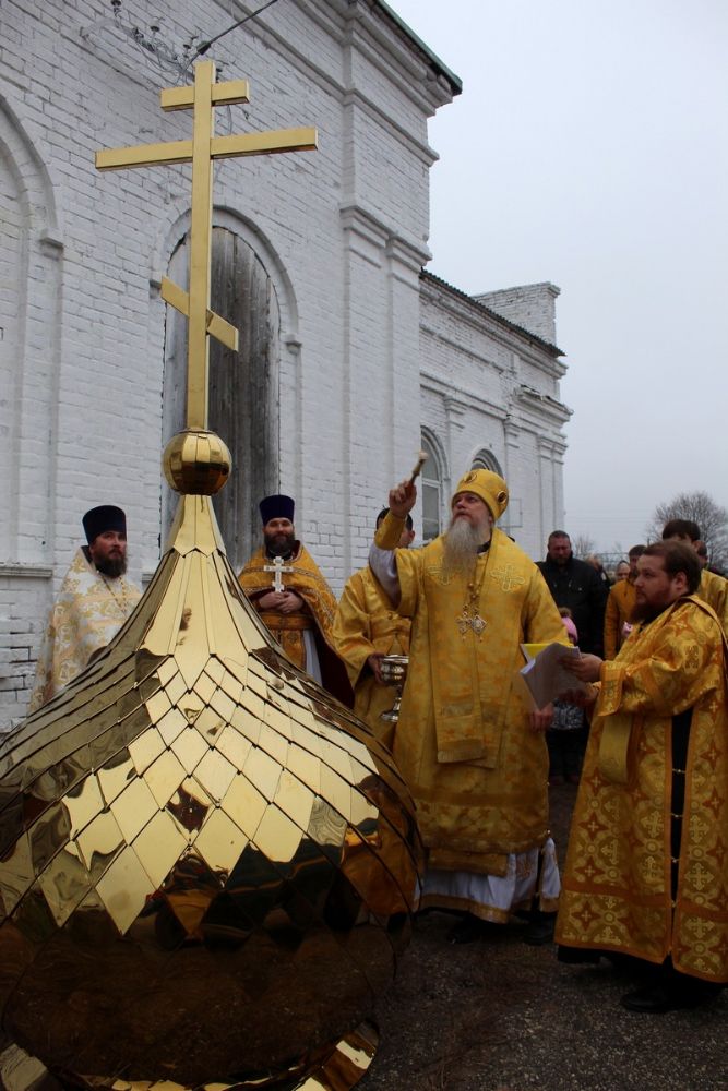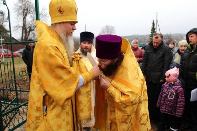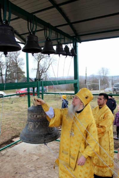 По окончании богослужения епископ Феофан возглавил чин освящения купола с крестом и колоколов. «Колокол – это голос ангела, призывающий нас к началу богослужения. Звук колокольный освящает окрестности, убивает злотворные воздухи, как мы сейчас их называем - микробы, которые по воздуху могут передаваться и заражать людей. По милости Божией Господь такую благодать даровал колокольному звону для освящения воздуха вокруг храма, а также нашей души, нашего сознания», - заключил владыка, поздравив прихожан с освящением.