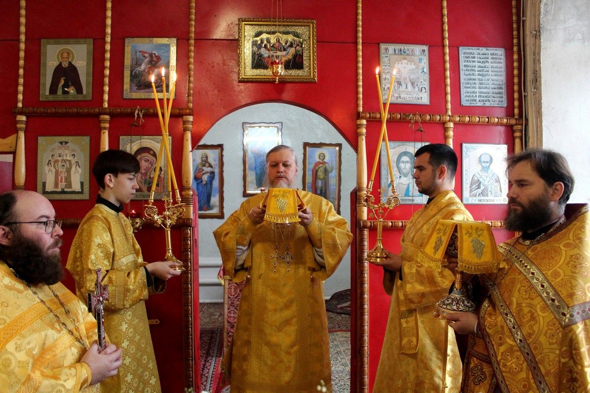 Владыке сослужили: благочинный Северного церковного округа, настоятель храма Архангела Михаила протоиерей Владимир Власов, настоятель храма преподобногомученика Андрея Критского с. Елембаево протоиерей Сергий Бажанов, настоятель храма Рождества Христова с. Пектубаево иерей Сергий Целищев, клирик собора святителя Николая Мирликийского г. Волжска диакон Иоанн Захаров.