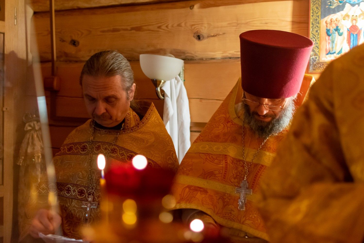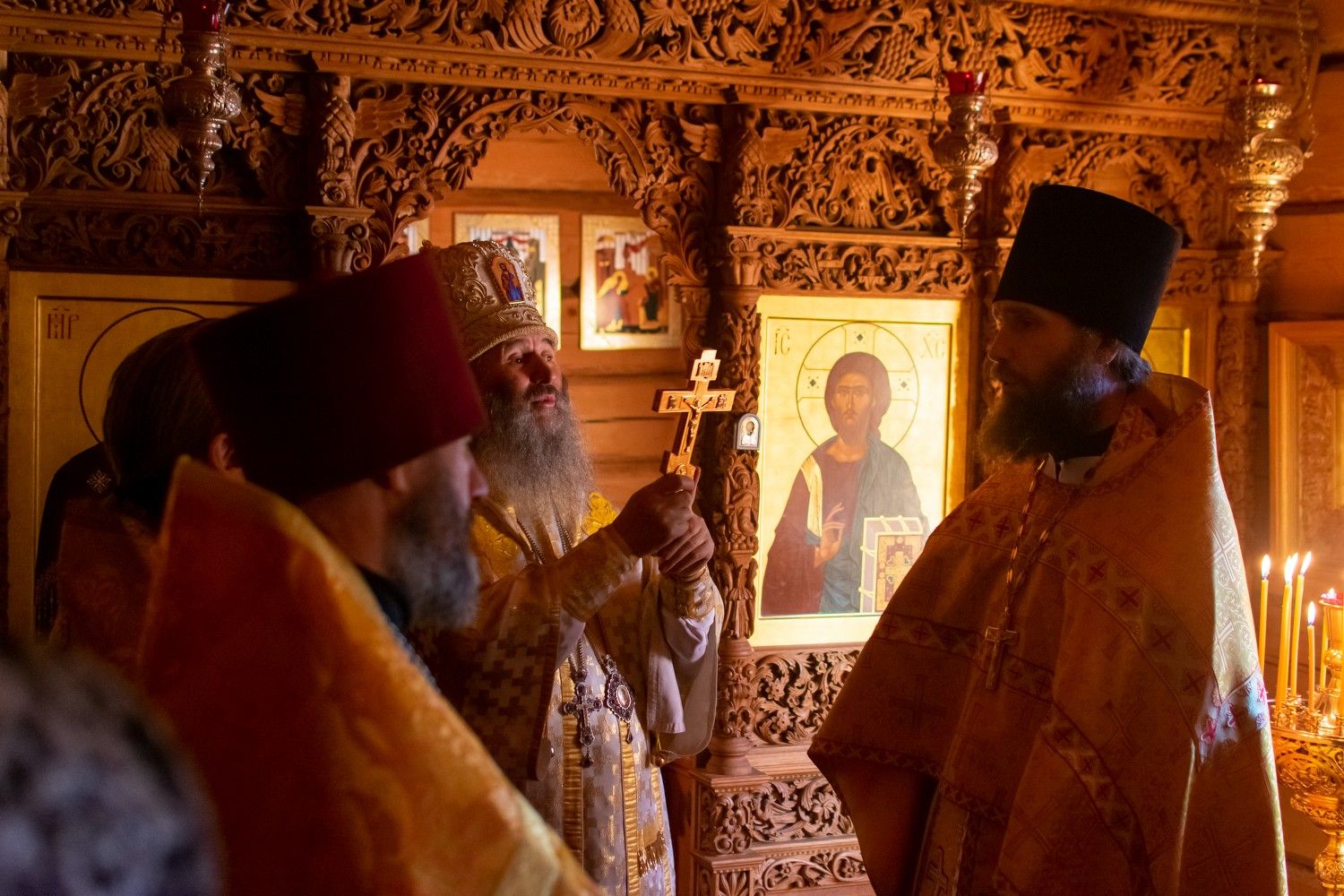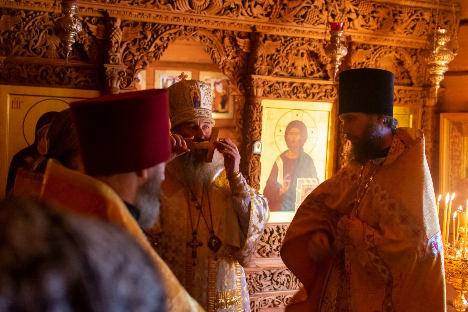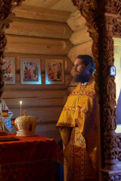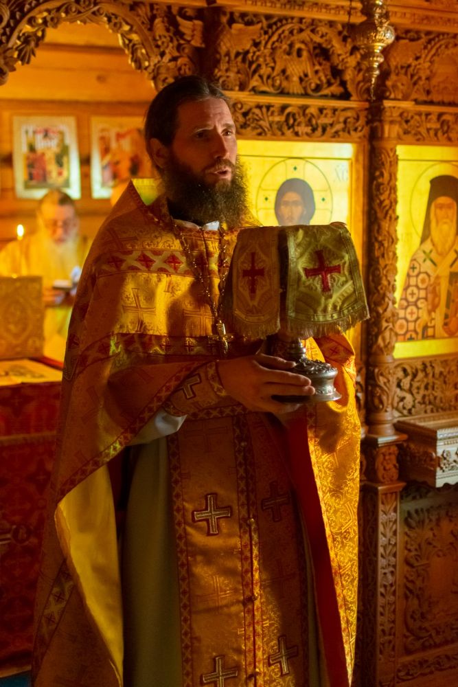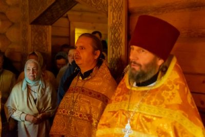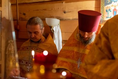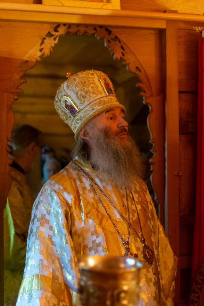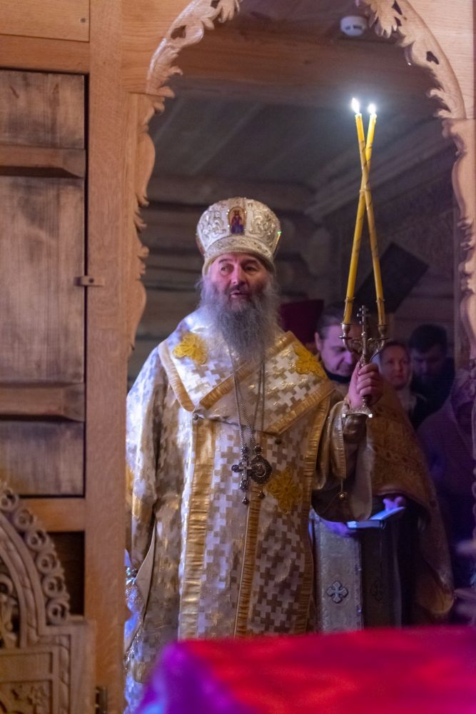 Владыке сослужили: благочинный Северо-Западного церковного округа, настоятель храма пророка Илии п. Килемары протоиерей Андрей Романов, старший священник монастыря священноинок Паисий (Киселев), настоятель храма Сретения Господня с. Кучки протоиерей Алексий Вязов, клирик храма пророка Илии п. Килемары иерей Димитрий Васенев и клирик храма Рождества Пресвятой Богородицы с. Семеновка протодиакон Михаил Козловский. Песнопения исполнял мужской хор храма Сретения Господня с. Кучки.