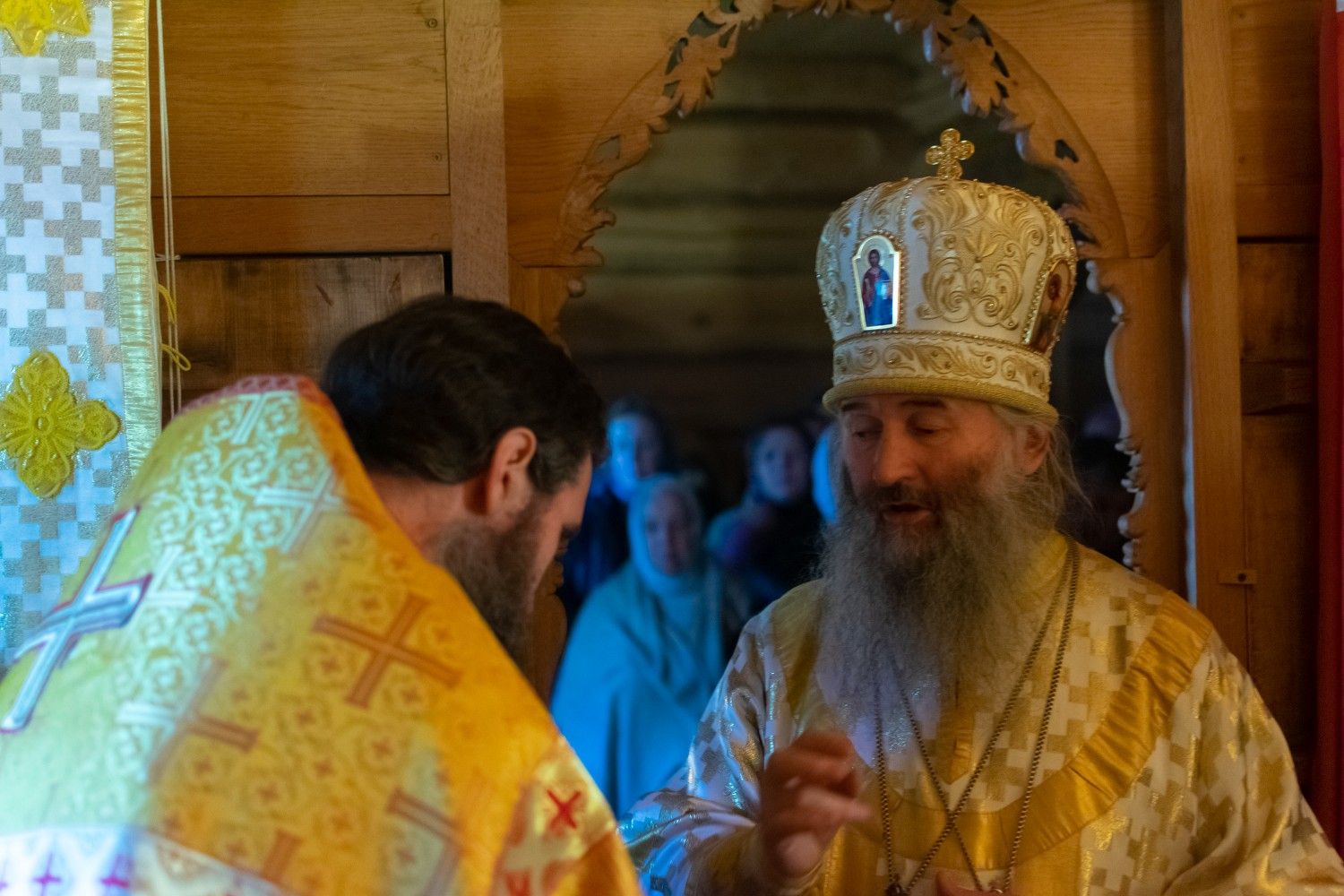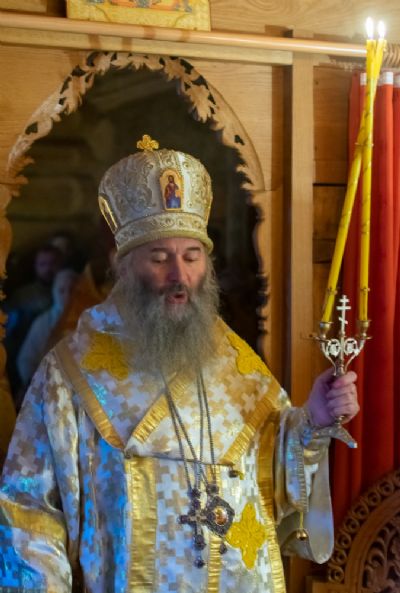 Затем митрополит Иоанн обратился с проповедью к собравшимся: «Всех вас дорогие отцы, братья и сестры поздравляю с престольным праздником! Сегодня вся полнота церковная обращает свои молитвенные взоры к Пречистой Богоматери Скоропослушнице, которая явив милость свою на горе Афонской, свой божественный покров распростирает и над Святой Русью.